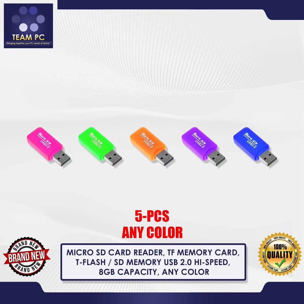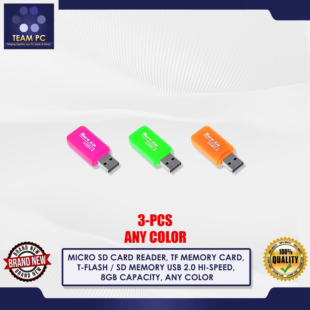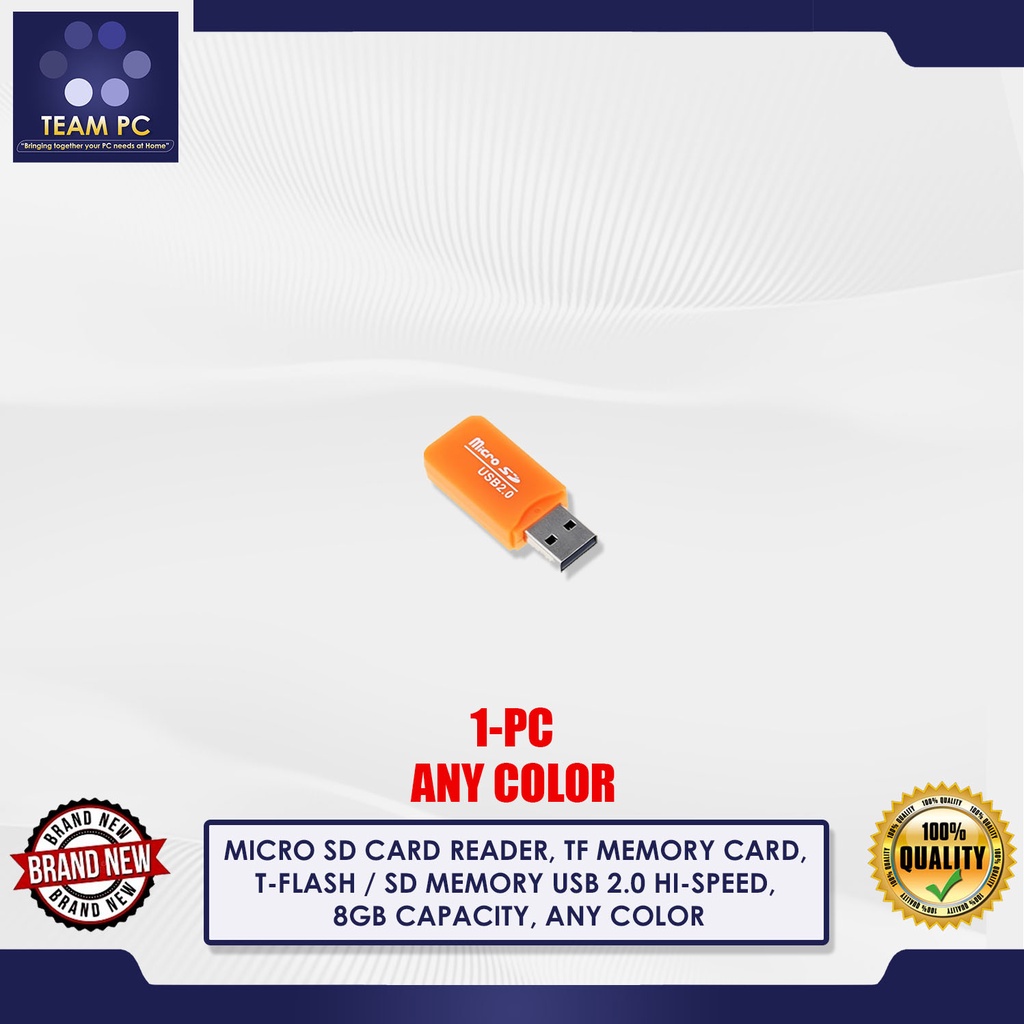 MICRO SD CARD READER, TF MEMORY CARD, T-FLASH / SD MEMORY USB 2.0 HI-SPEED, 8GB CAPACITY, ANY COLOR