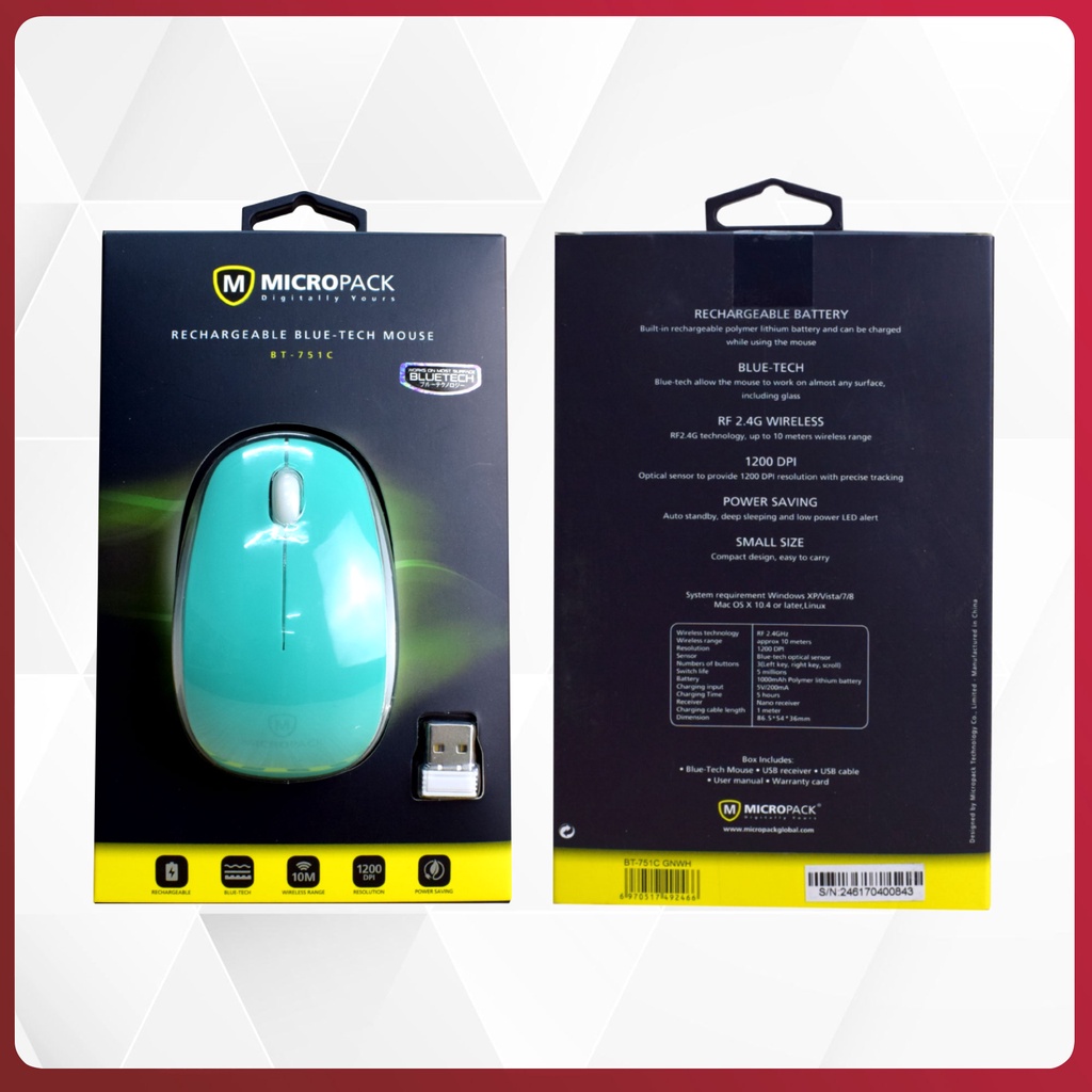 MICROPACK (BT-751C) - Rechargeable Blue-Tech Mouse Speedy Mini Wireless Mouse