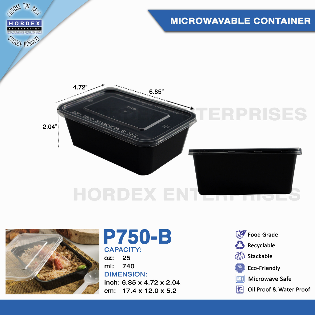 MICROWAVEABLE CONTAINER P750 [CLEAR AND BLACK] (10pcs)