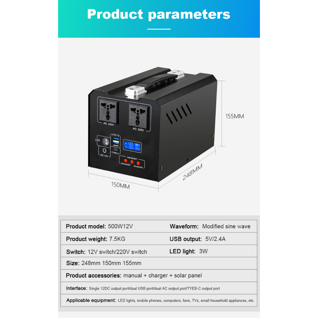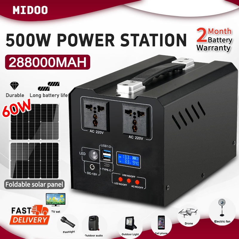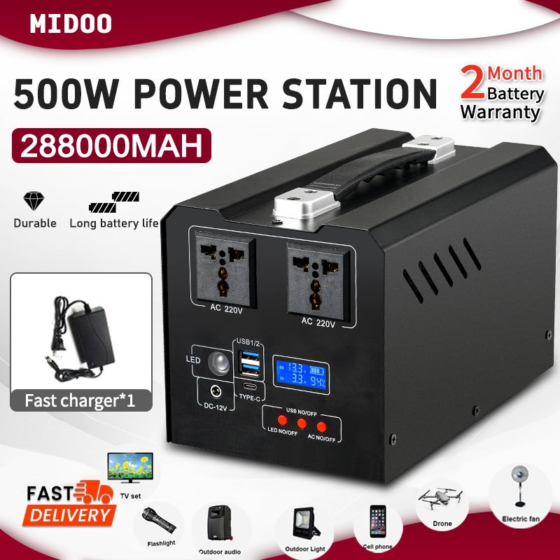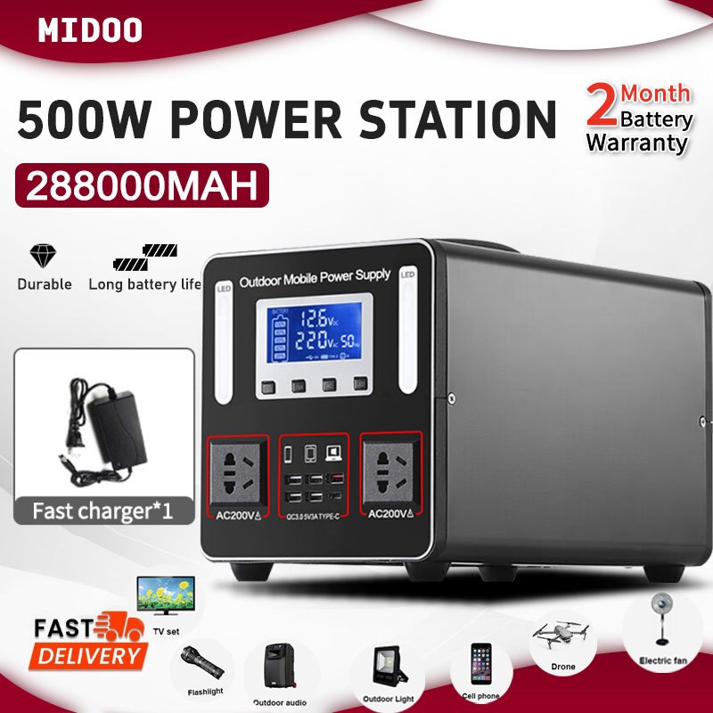 MIDOO Power Station 500W Portable 288000mAh Big Capacity Powerbank Multi-Function Solar Generator