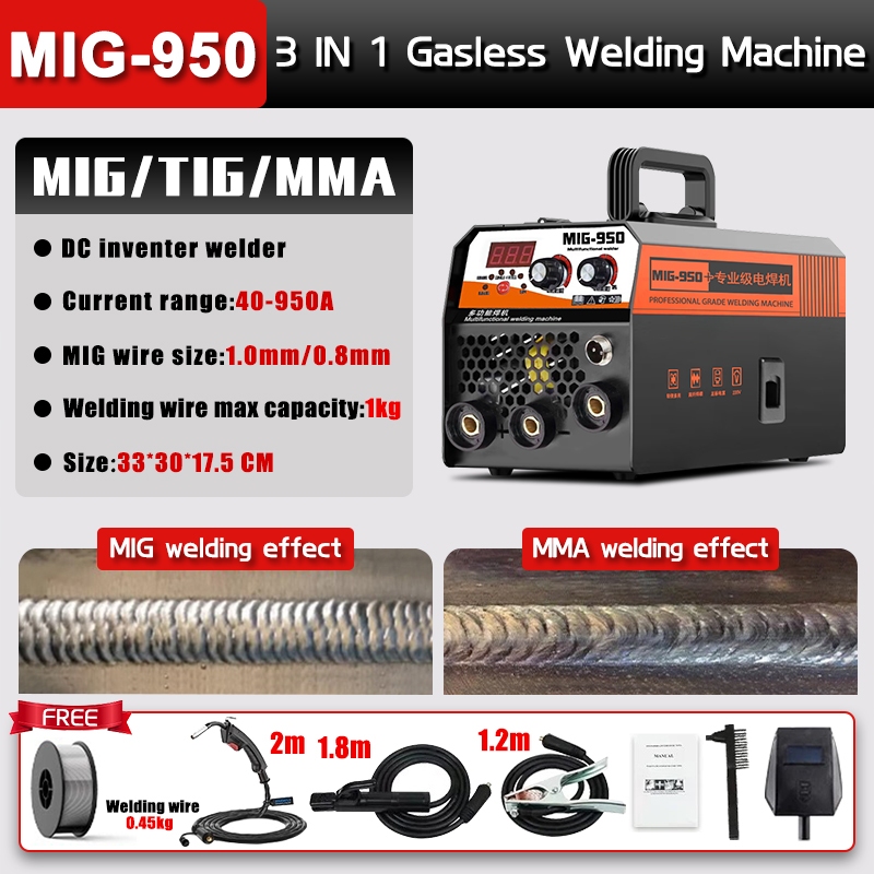 MIG-950 Welding Machine MIG&MMA&TIG 3IN1 Gasless Welder Portable IGBT DC Inverter Welder MIG Welder