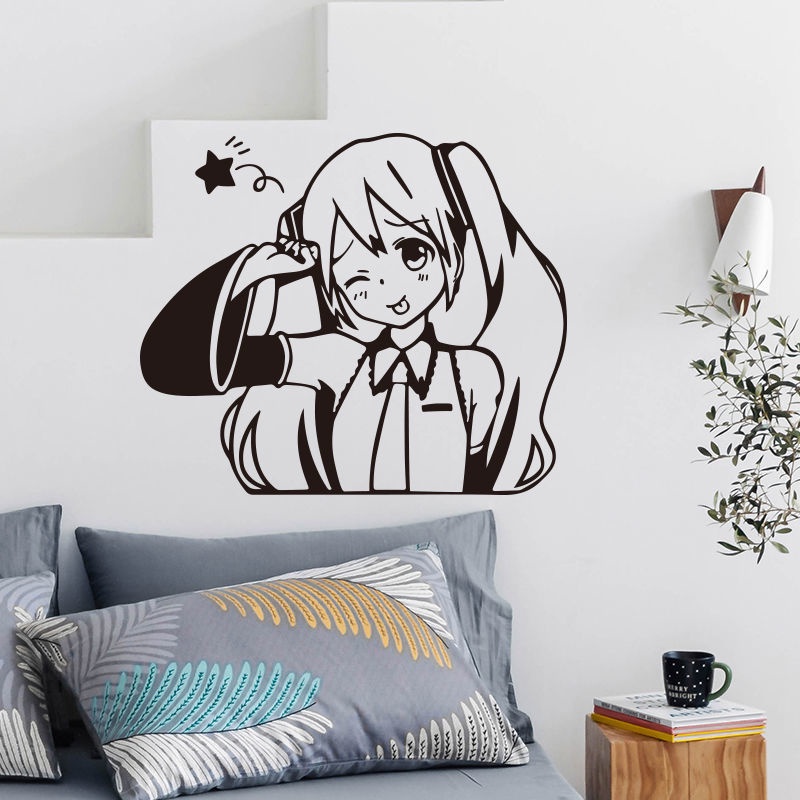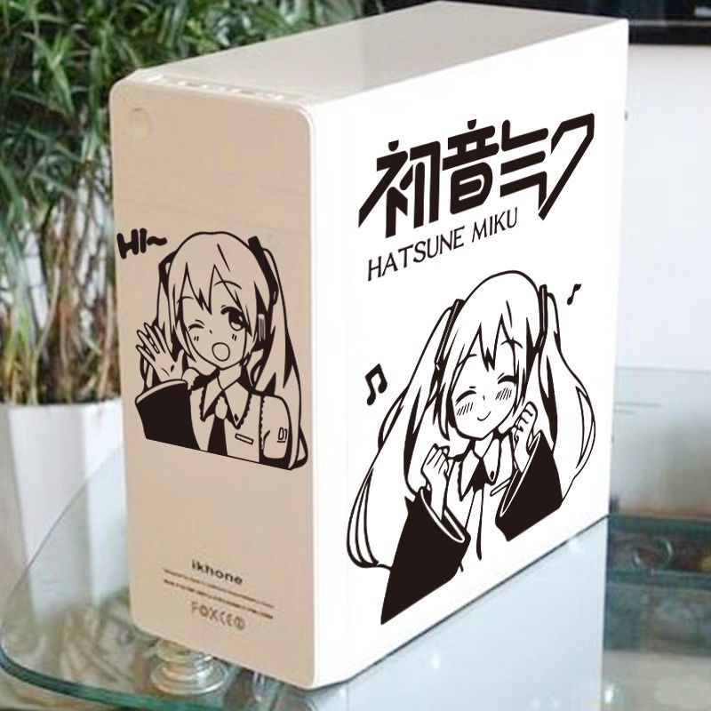 MIKU Anime PC Case Stickers Cartoon Waterproof Computer Host Decal Removable ATX Middle Tower Case Hollowed out Sticker