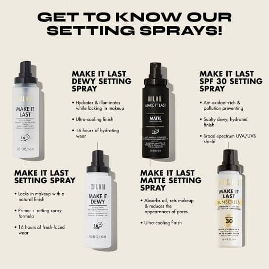 MILANI Make It Last Setting Spray - Authentic Longwearing Primer Mist Matte Dewy