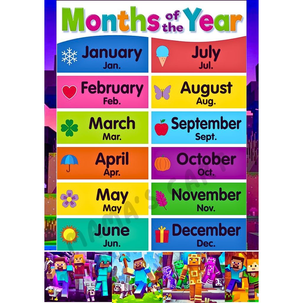 MINECRAFT EDUCATIONAL CHARTS A4 SIZE LAMINATED FOR KIDS ALPHABET NUMBERS COLORS SHAPES PRESCHOOL