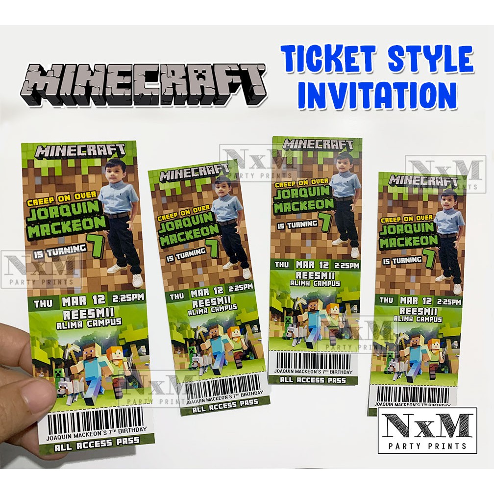 MINECRAFT Ticket Style Invitation Card