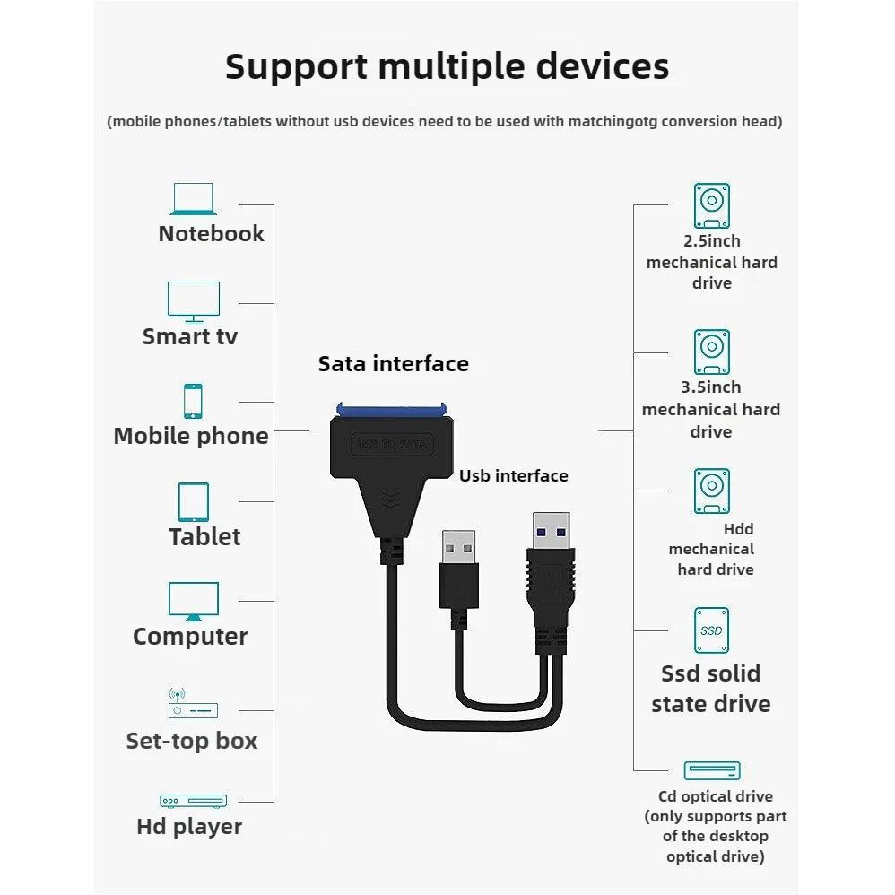 MINGCVIL USB 3.0 To Sata Cable For 2.5 Inch External HDD SSD Hard Drive Adapter SATA To USB Hard Disk Adapter Cable