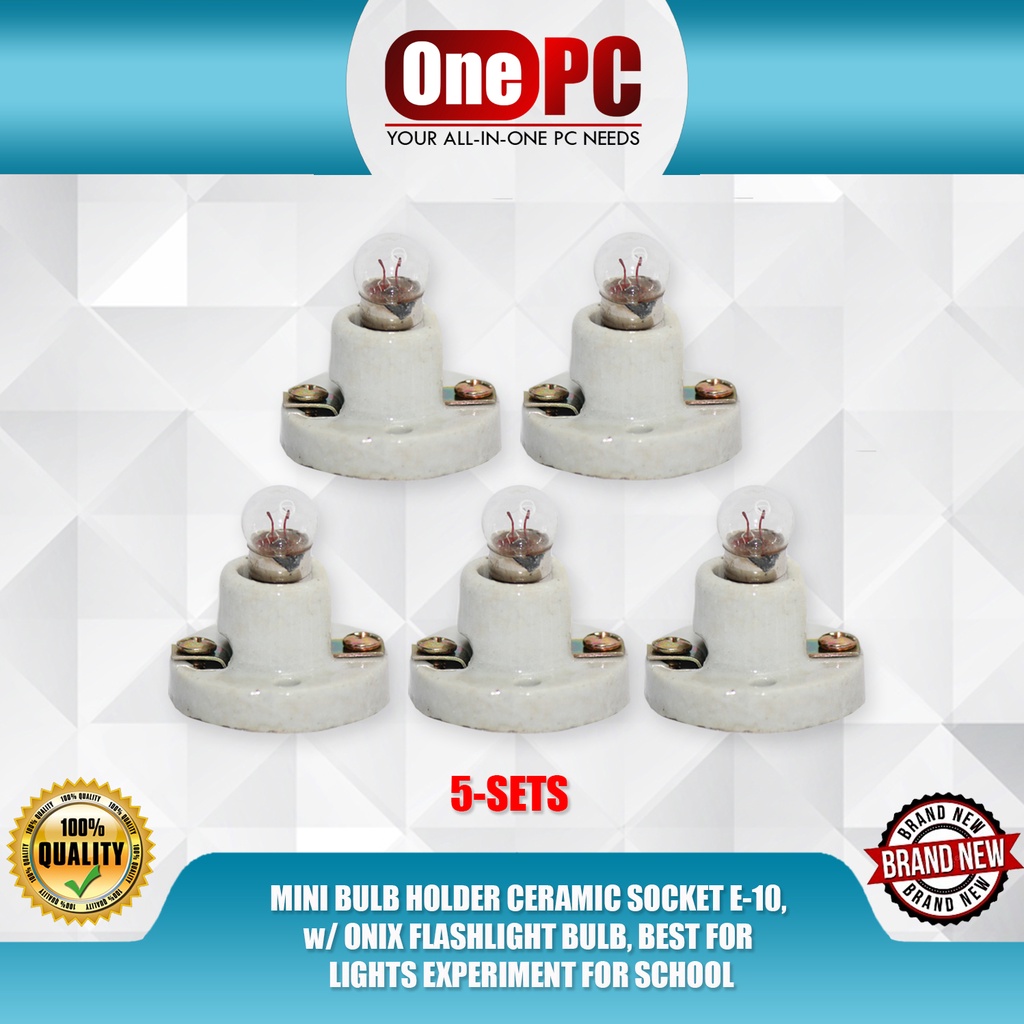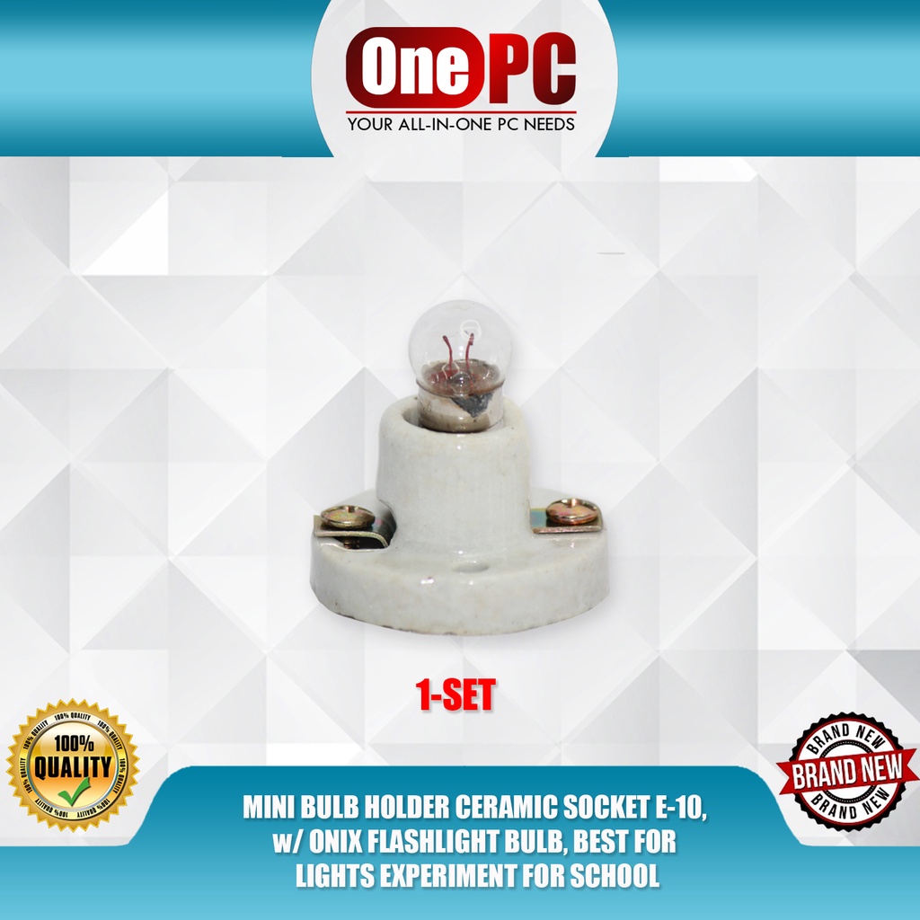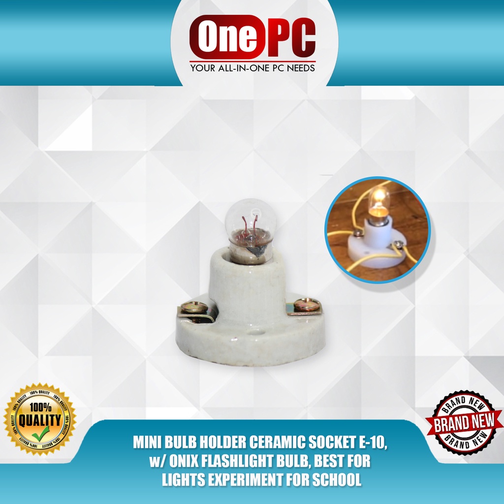 MINI BULB HOLDER CERAMIC SOCKET E-10, w/ ONIX FLASHLIGHT BULB, BEST FOR LIGHTS EXPERIMENT FOR SCHOOL