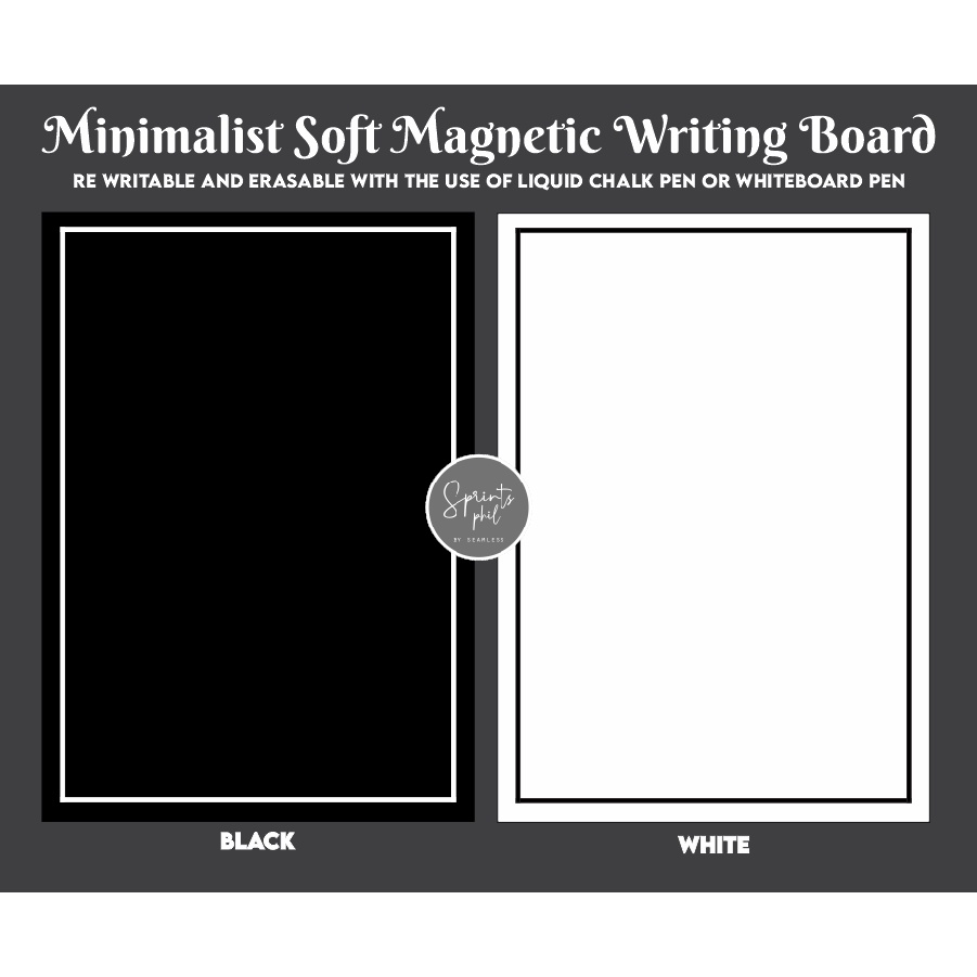 MINIMALIST FLEXIBLE MAGNETIC WRITING BOARD ONLY REWRITABLE ERASABLE IN WHITE OR BLACK