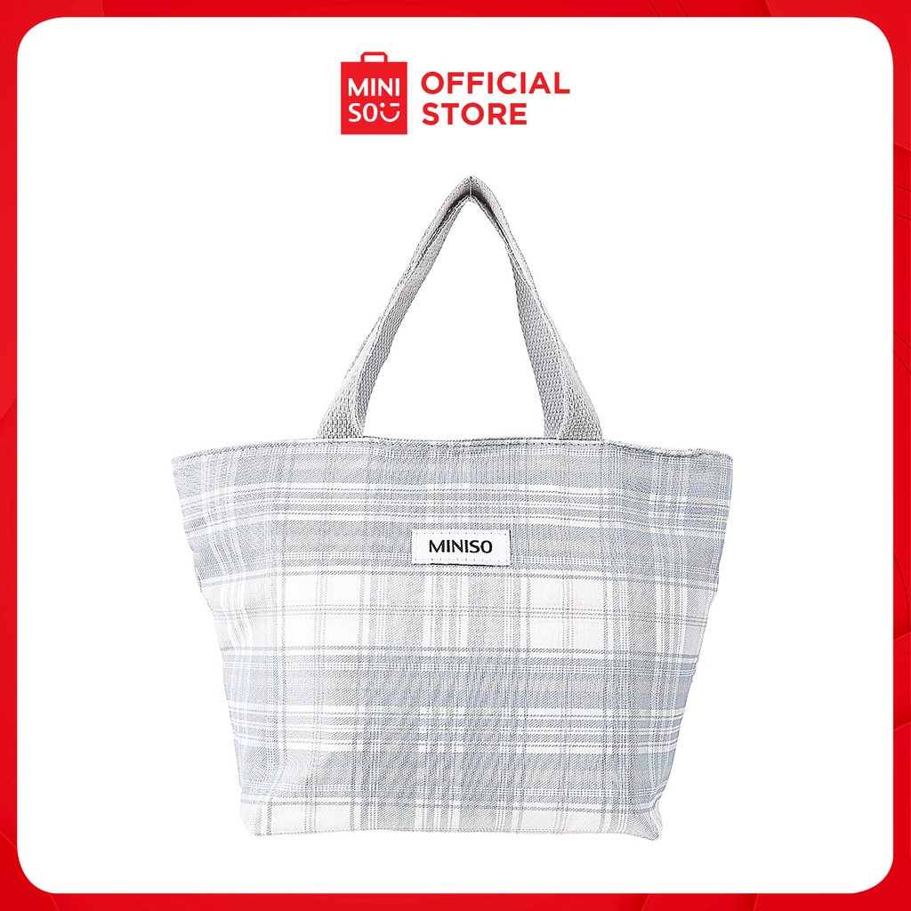 MINISO Classic Plaid Trapezoid Lunch Bag(Light Gray)