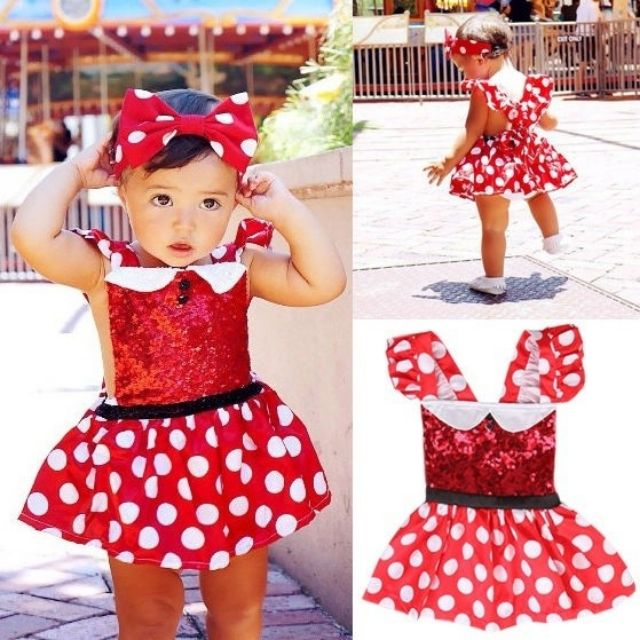 MINNIE MOUSE Baby Costume Girls Dress Red Polkadots