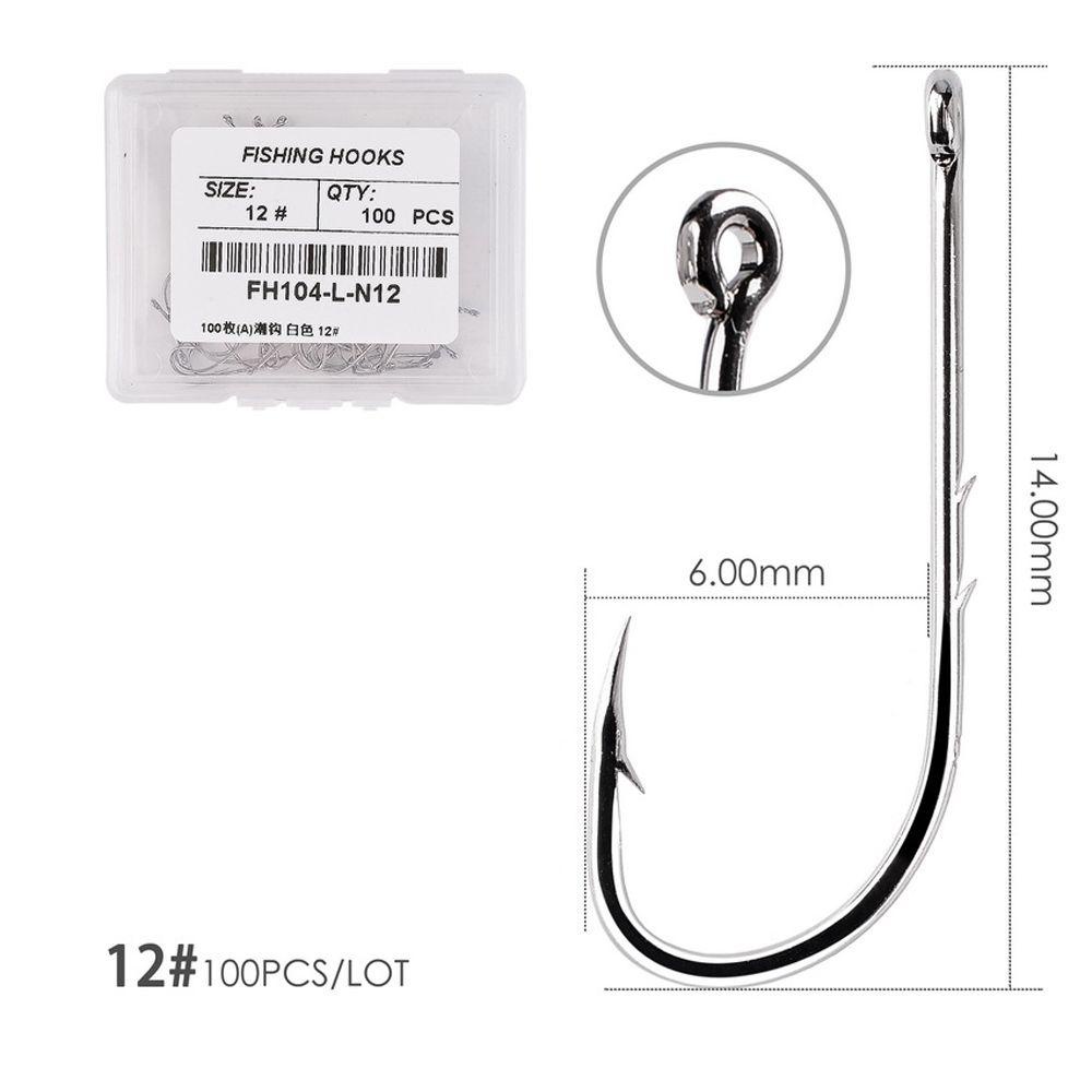MIQUELPW 100 PCS Long Shank Fishing Hook Single Circle Hook Lure Hooks Double Back Barbed Fly Fishing Hook Sharp Anti-rust Barbed Fishhook