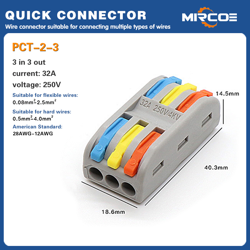 MIRCOE 32A Quick Wire Connector Universal Wiring Cable Connector Mini Termal Block 1 in 1 out 2 in 2 out 3 in 3 out 4 in 4 out 5 in 5 out Wire Splitter