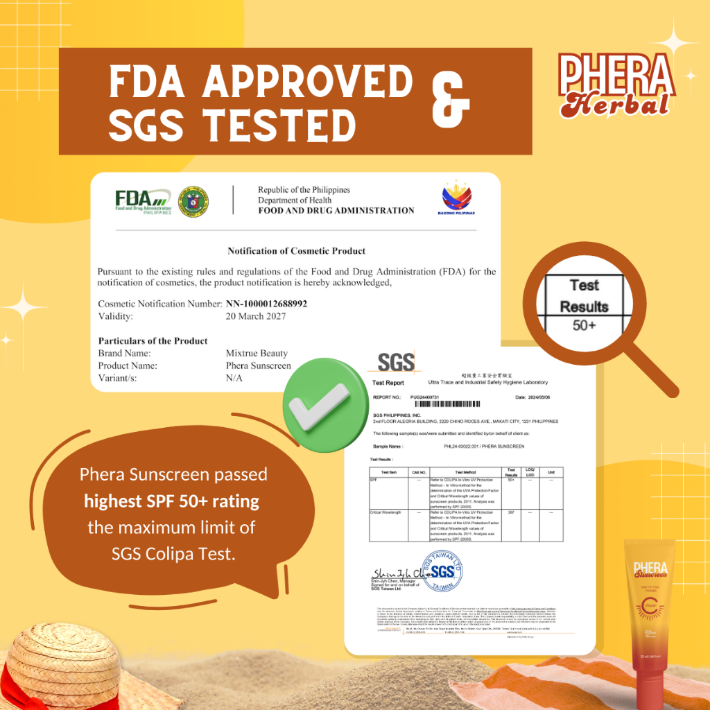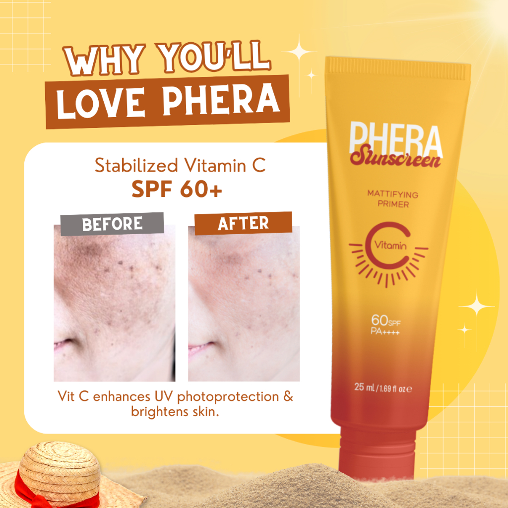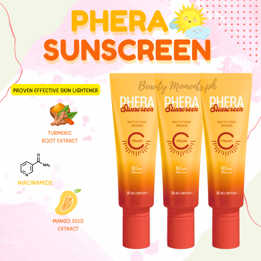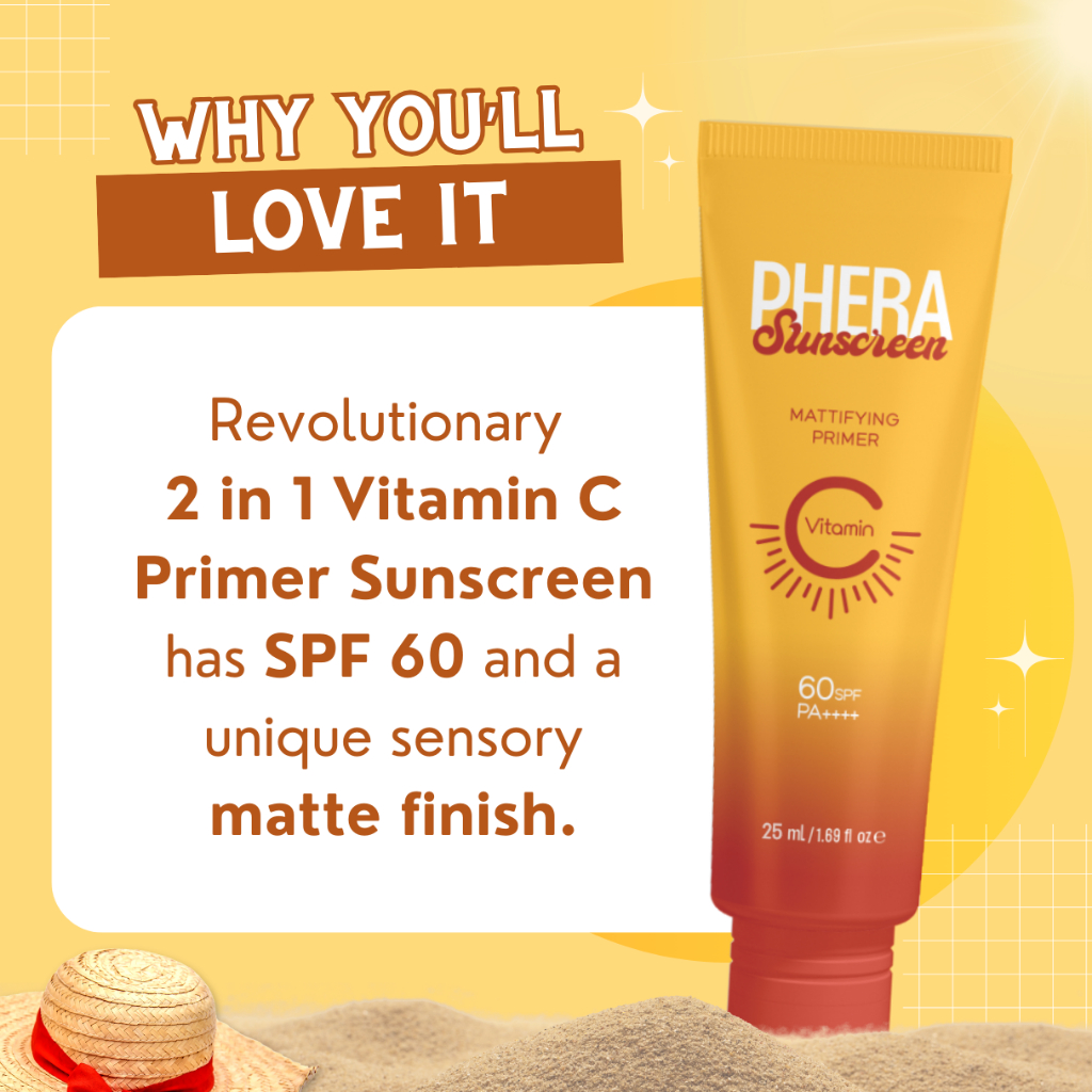 MIXTRUE BEAUTY/PHERA SUNSCREEN MATTE FINISH PRIMER SPF60 VITAMIN C NO WHITECAST OIL CONTROL BRIGTHEN