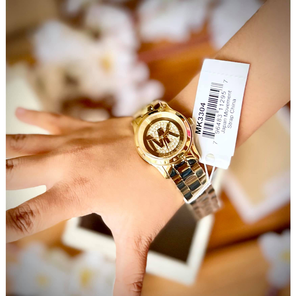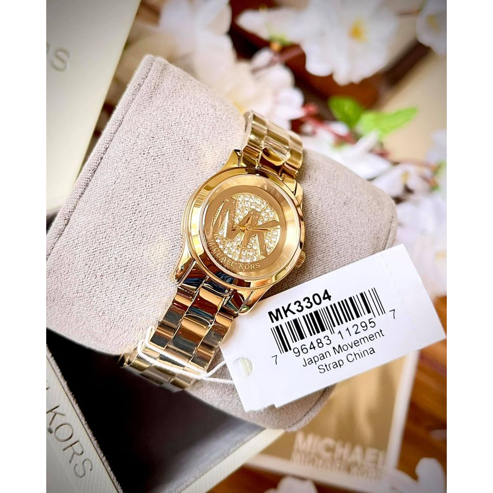 MK Watch pawnable Mini MK LOGO FULL STONE ALL GOLD MK3304 #each