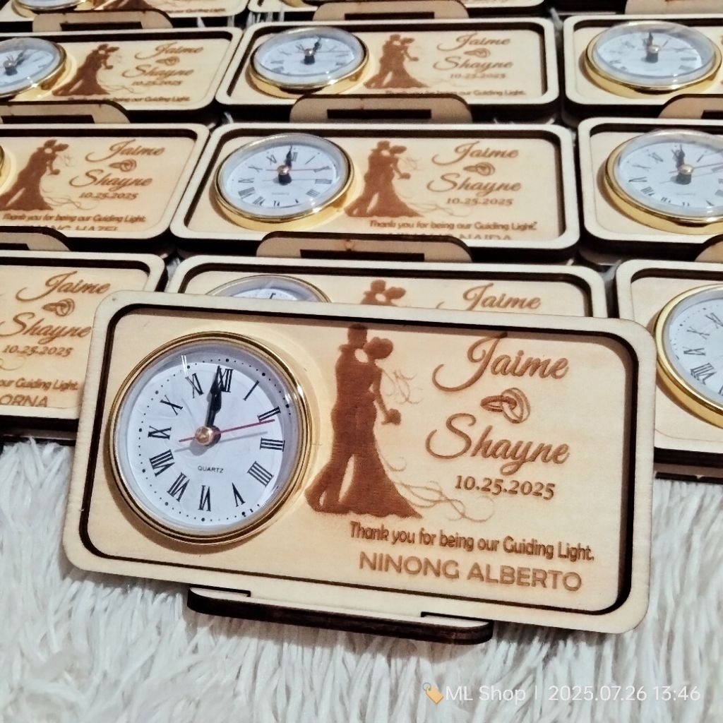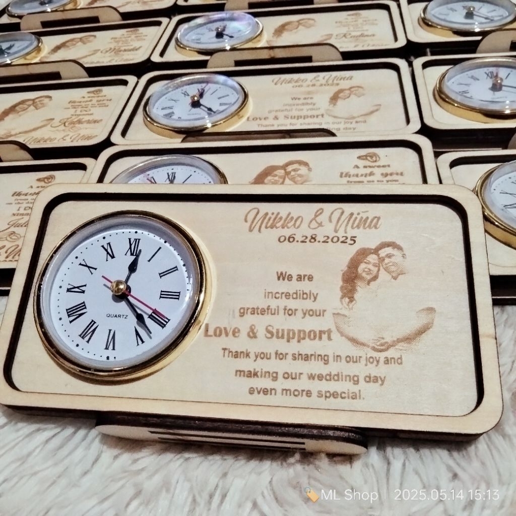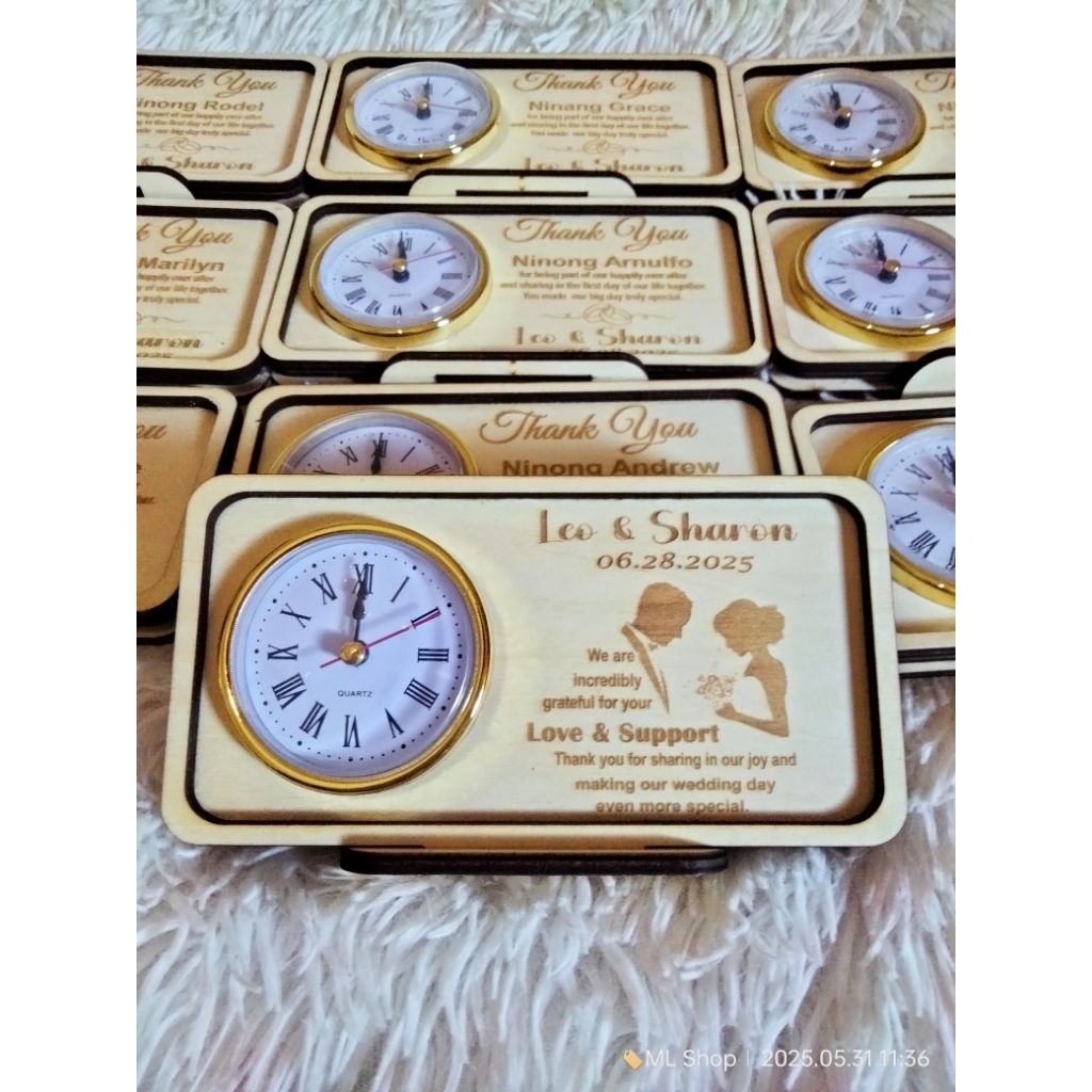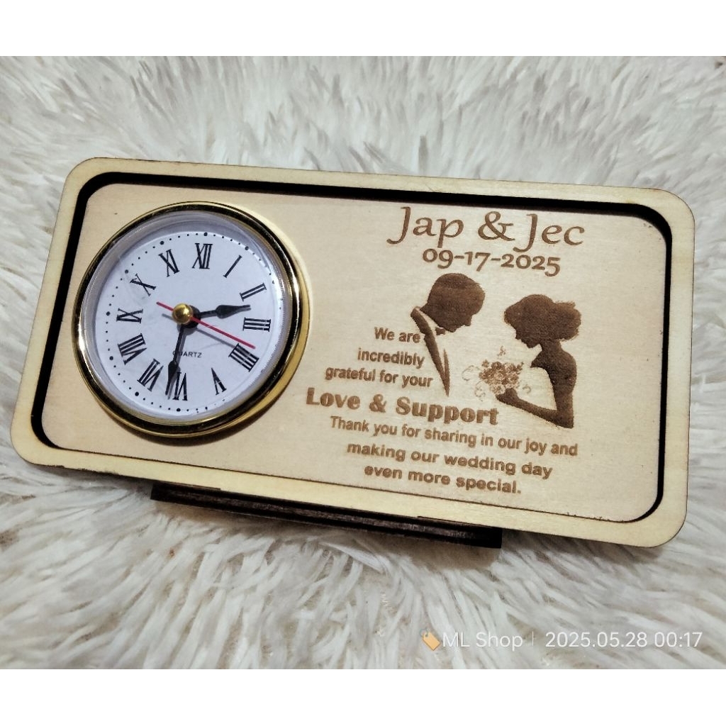 PERSONALIZED WOODEN DESKCLOCK - WEDDING SOUVENIR