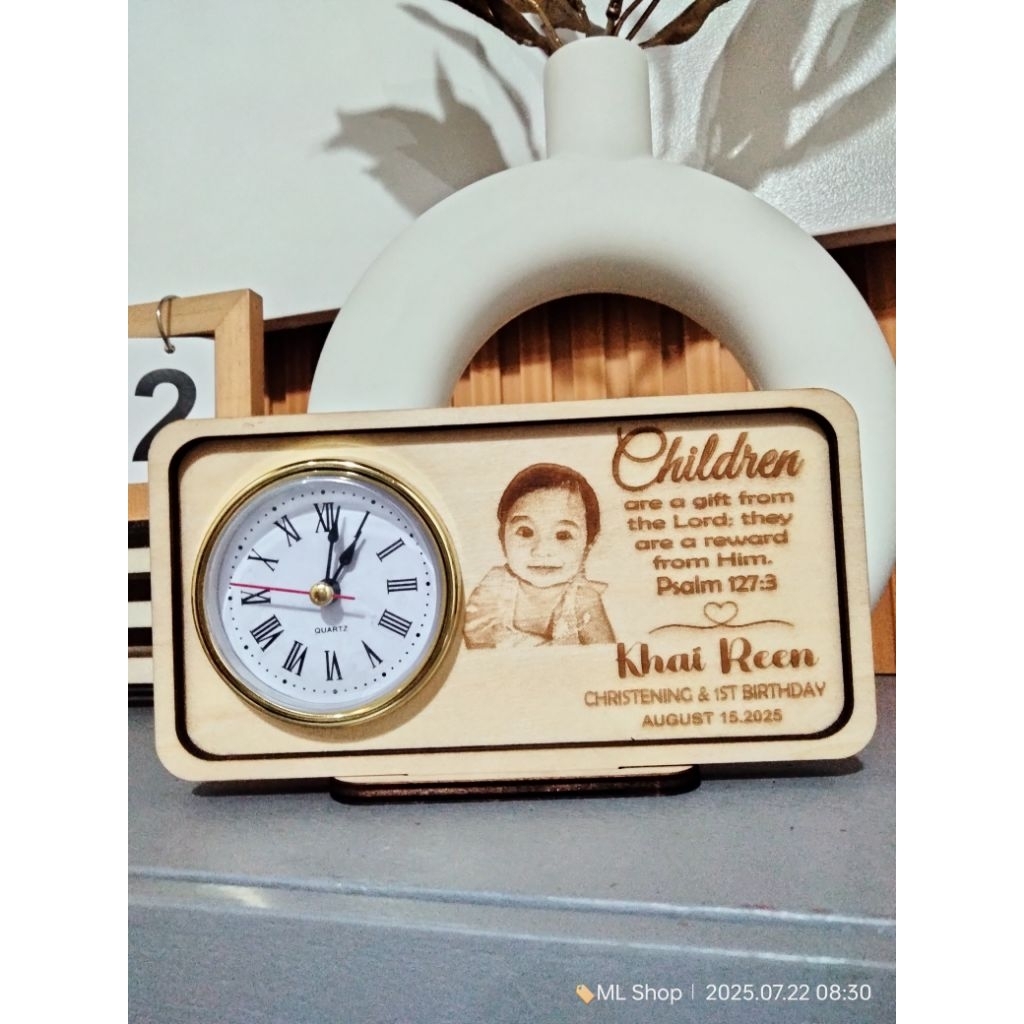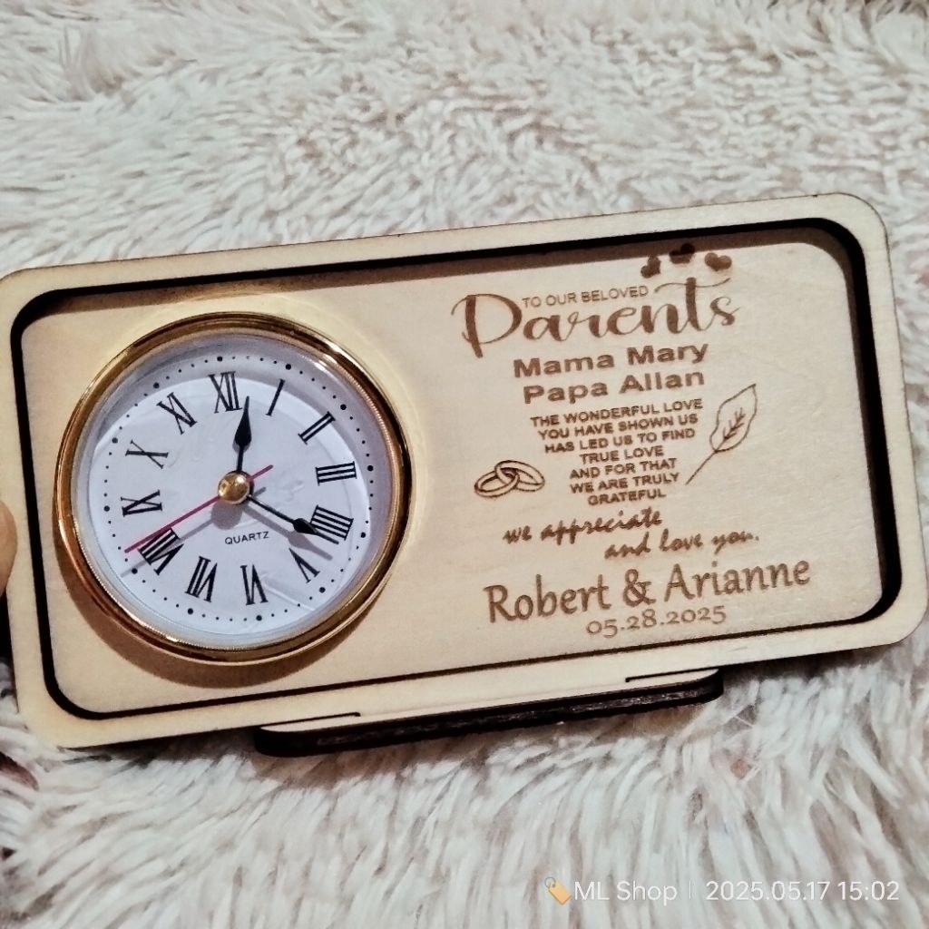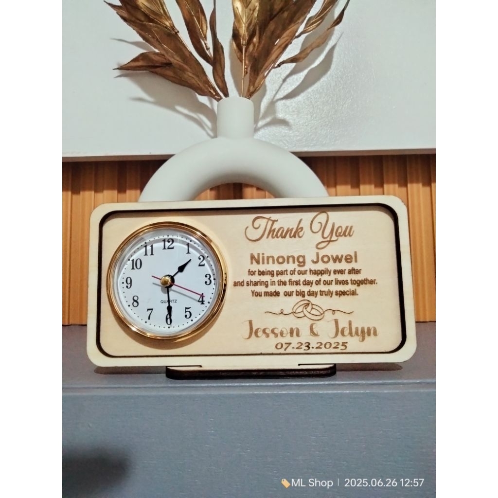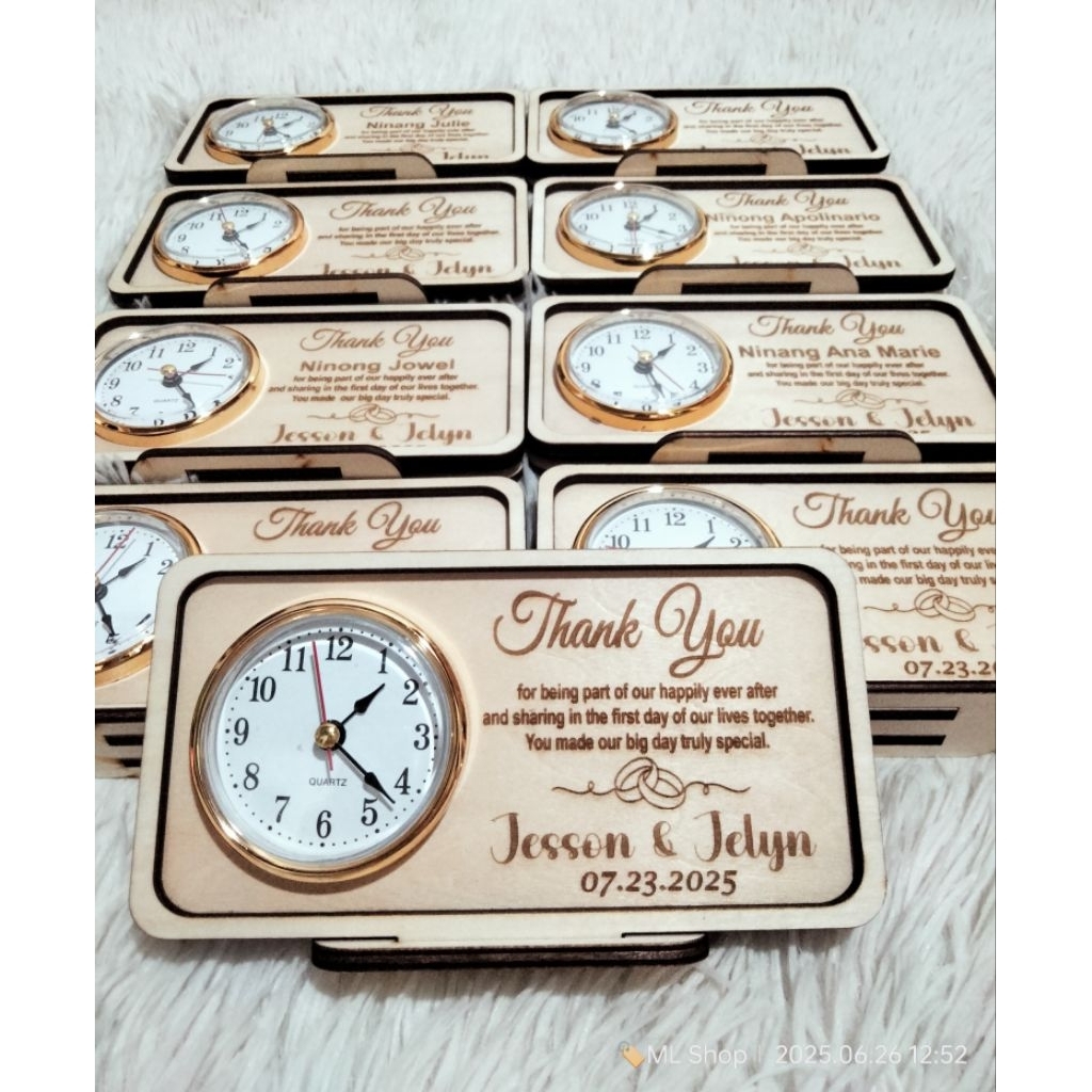 PERSONALIZED WOODEN DESKCLOCK - WEDDING SOUVENIR