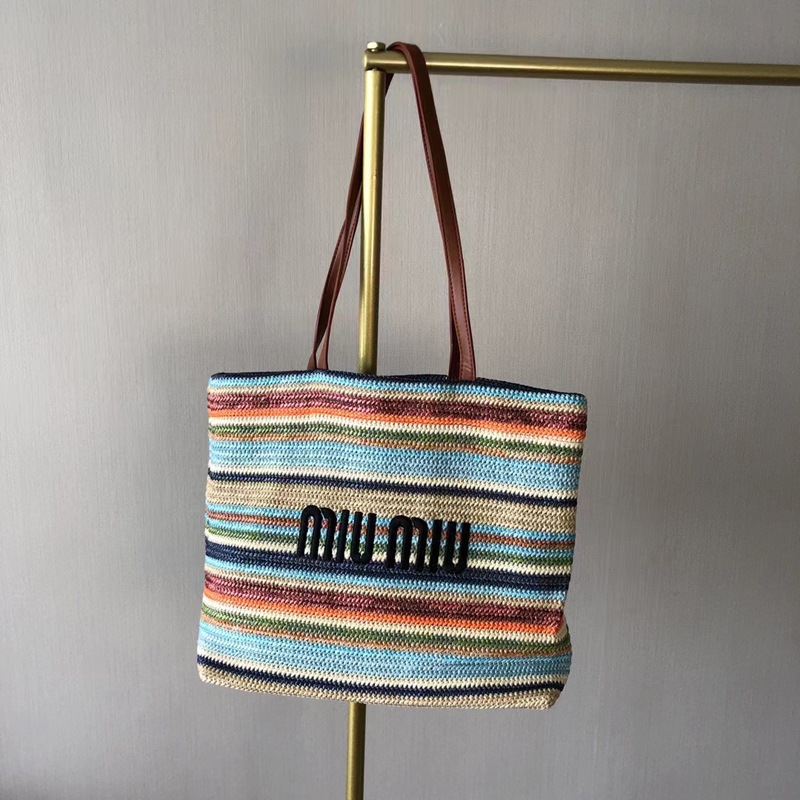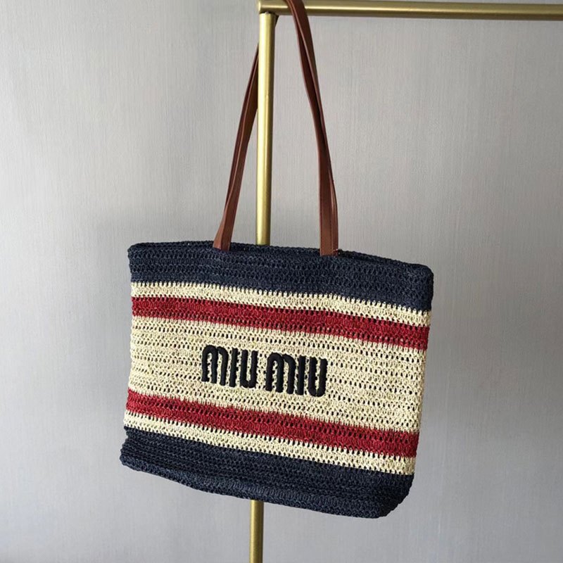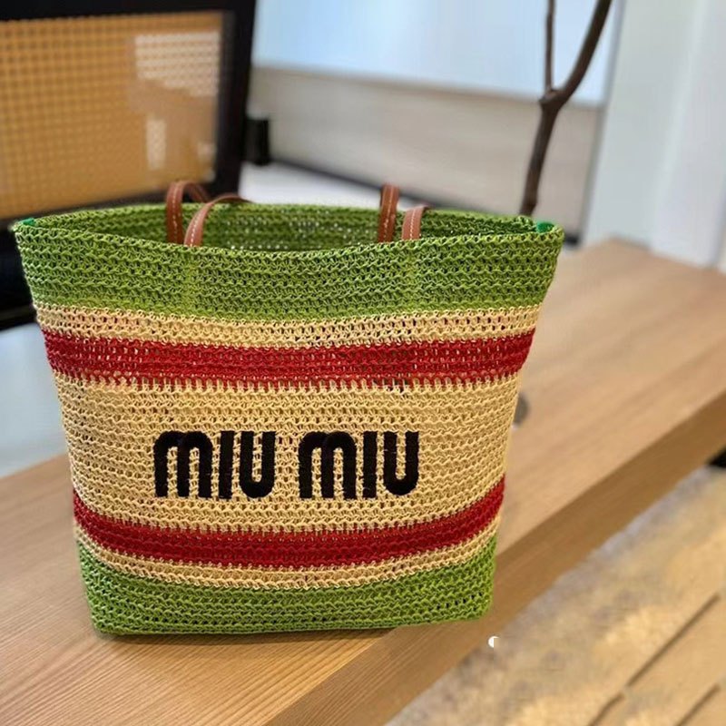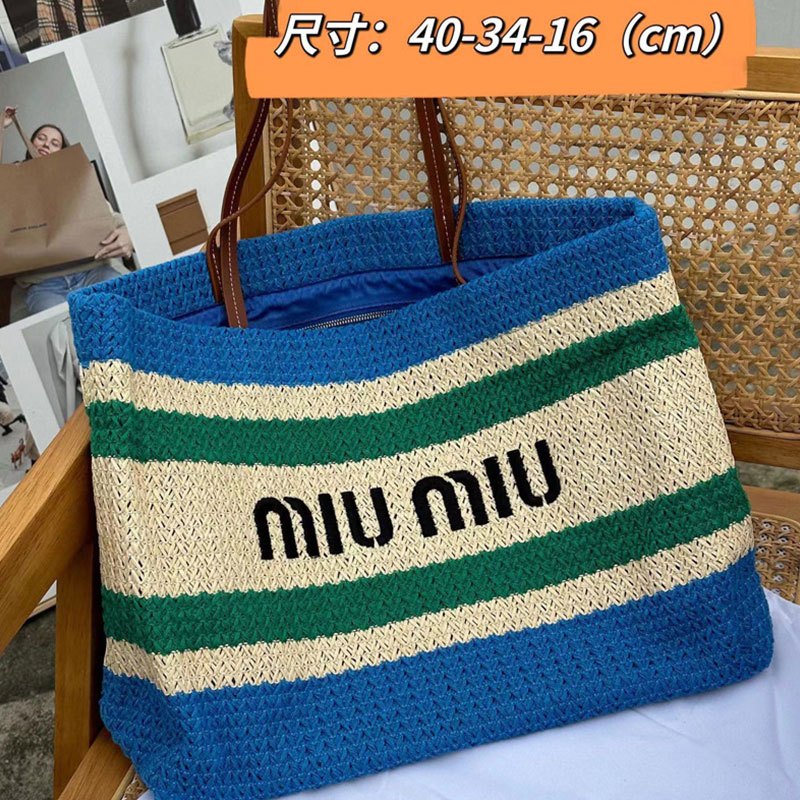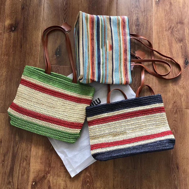 MM Beach Tote Women's Bag Lafite Grass Large Capacity Striped Woven Straw Shoulder Bag