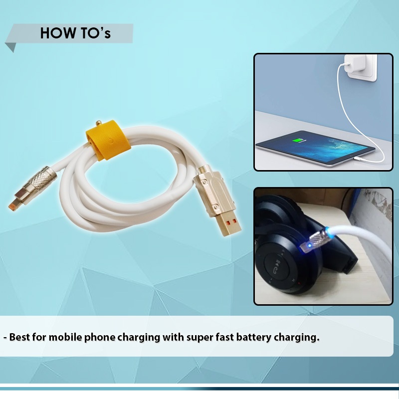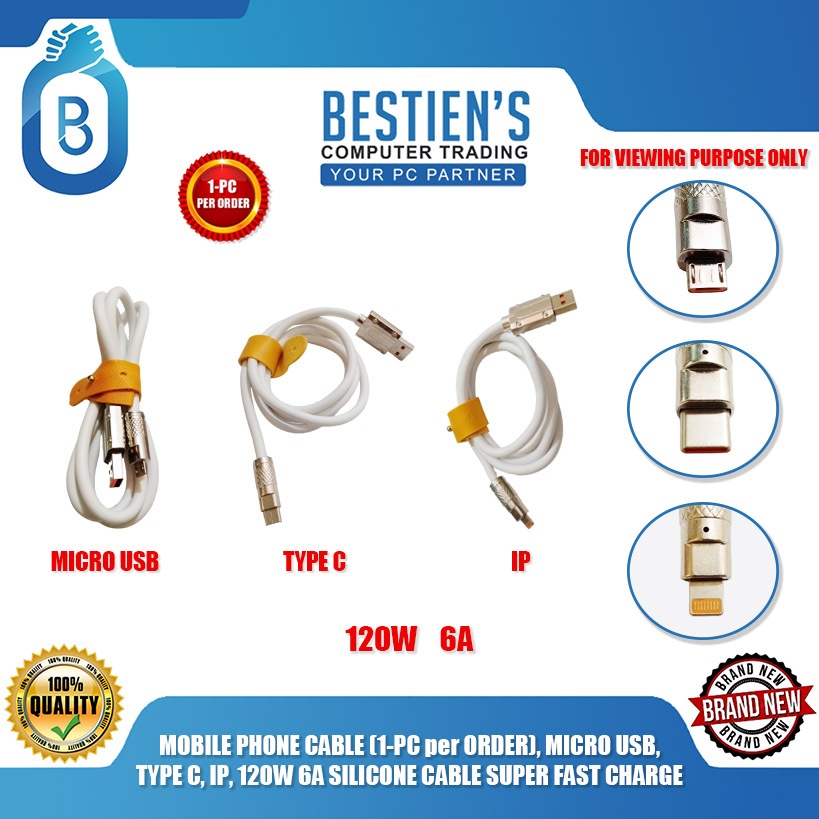 MOBILE PHONE CABLE (1-PC per ORDER), MICRO USB, TYPE C, IP, 120W 6A SILICONE CABLE SUPER FAST CHARGE