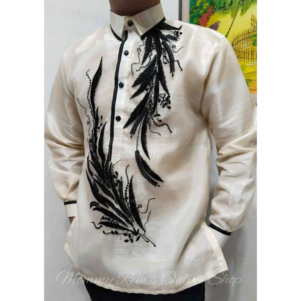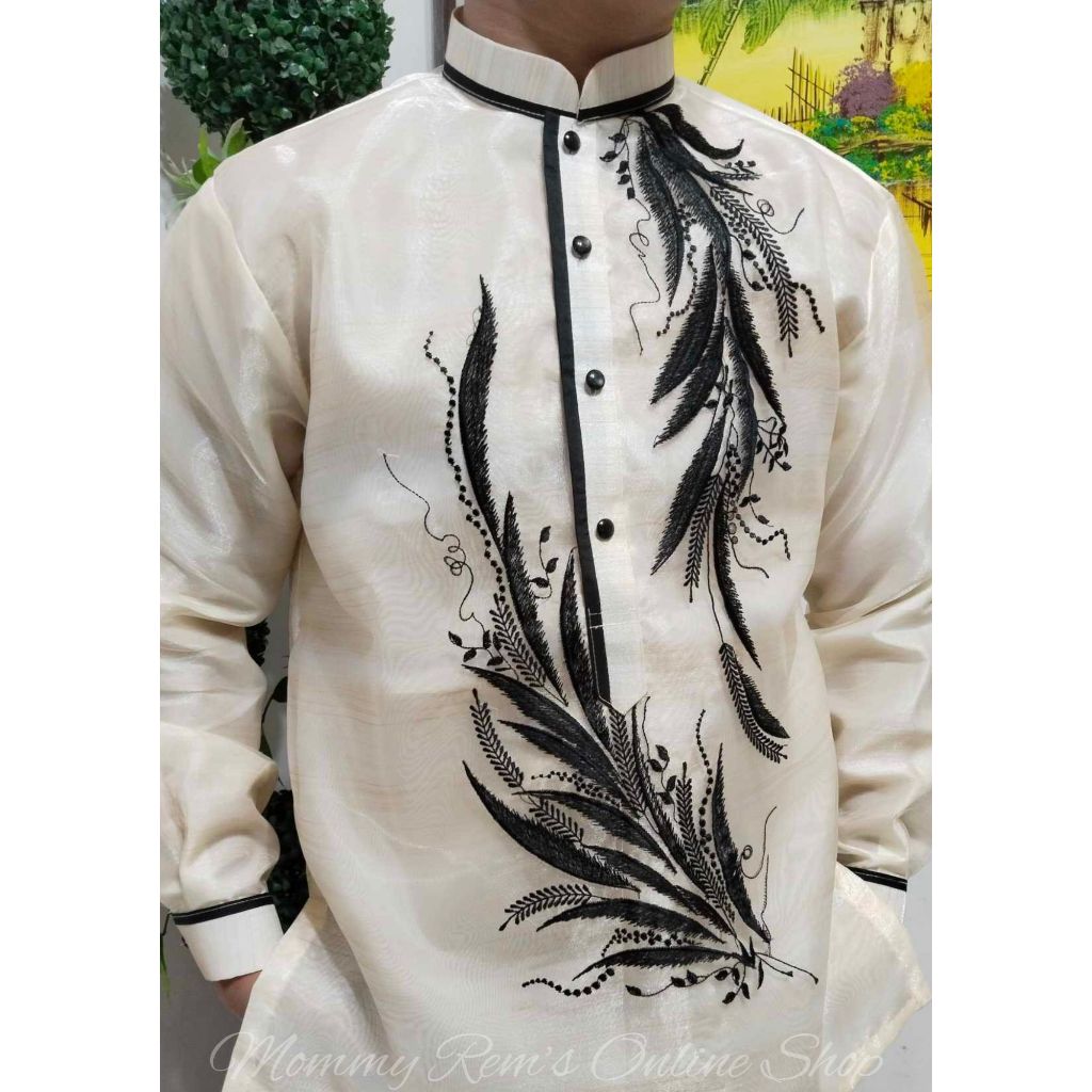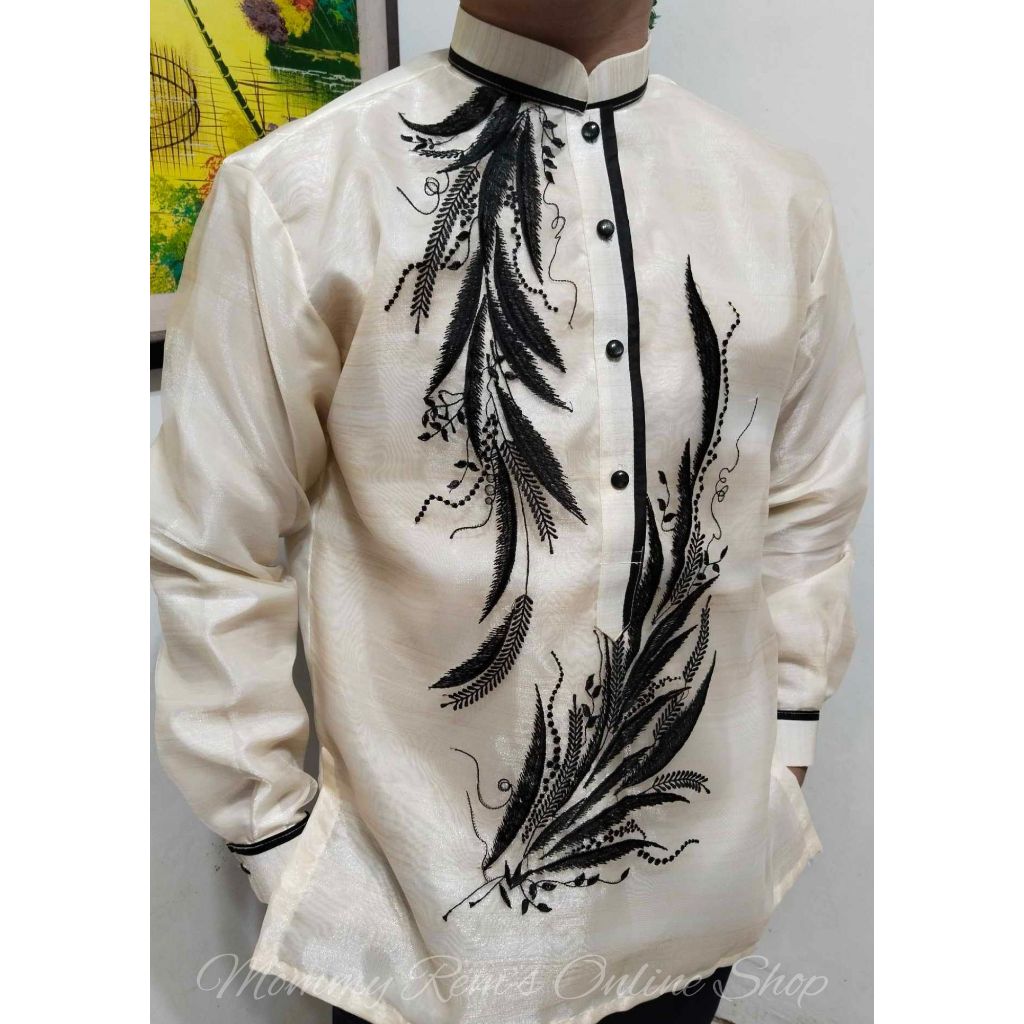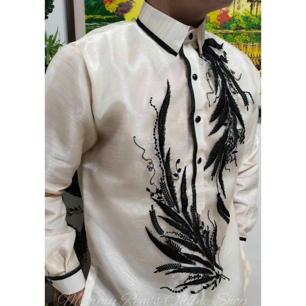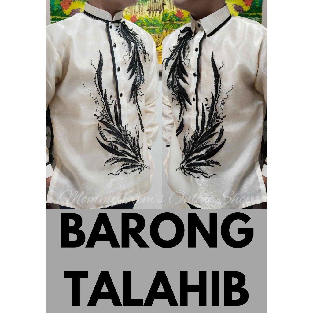 MODERN BARONG TAGALOG WITH BLACK EMBROIDERY TALAHIB DESIGN