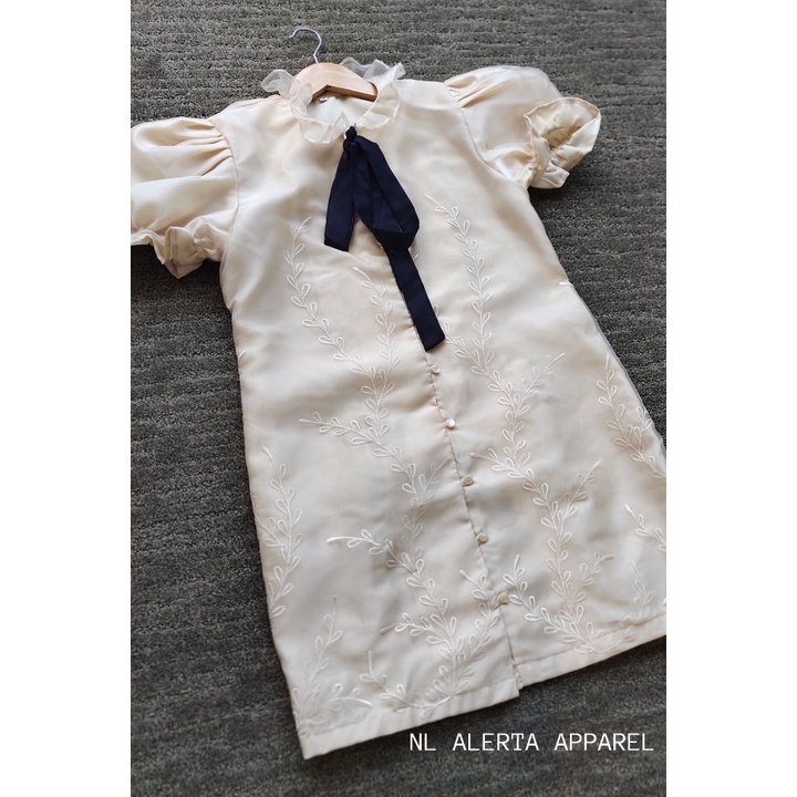MODERN FILIPINIANA BARONG DRESS WITH TIE FOR WOMEN