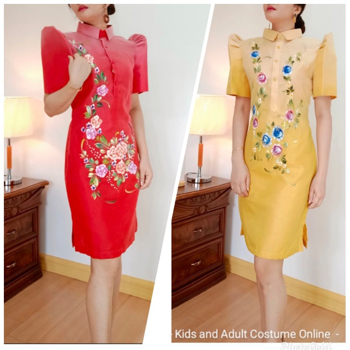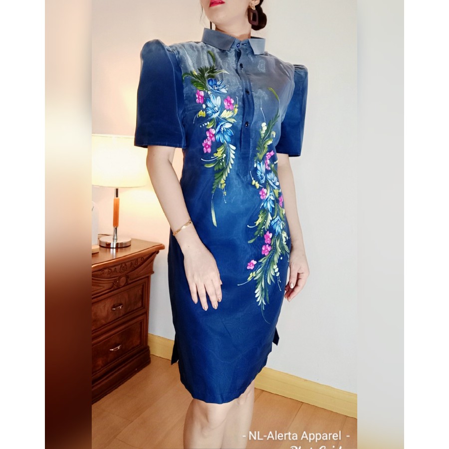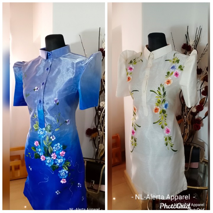 MODERN FILIPINIANA HAND PAINTED MESTIZA BARONG DRESS FOR WOMEN