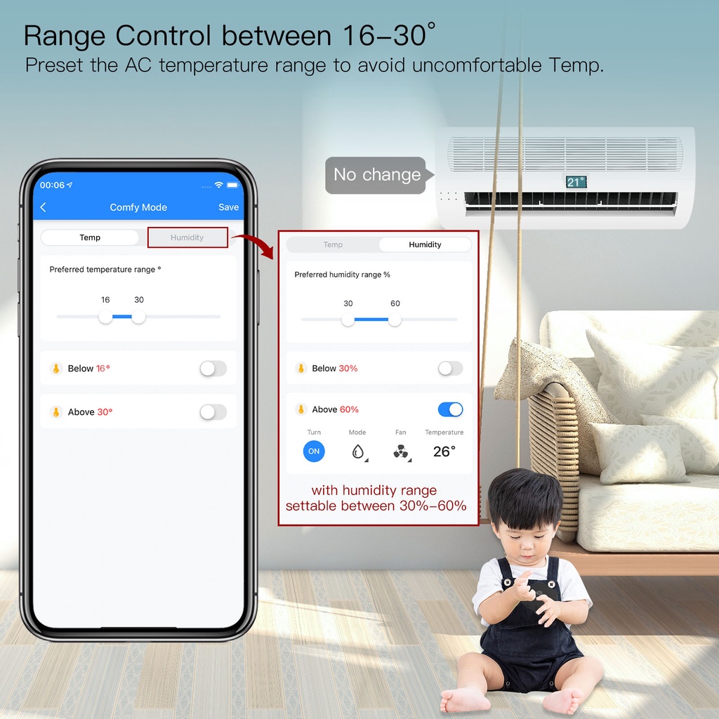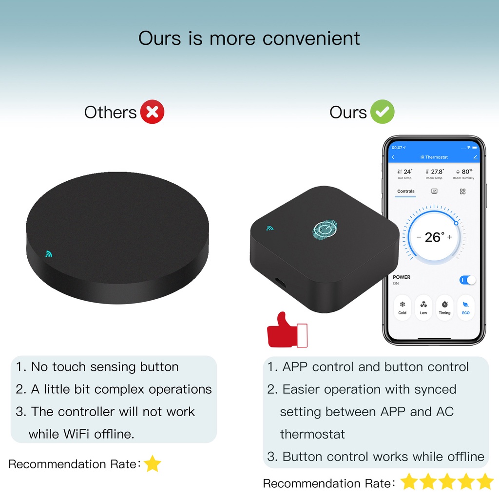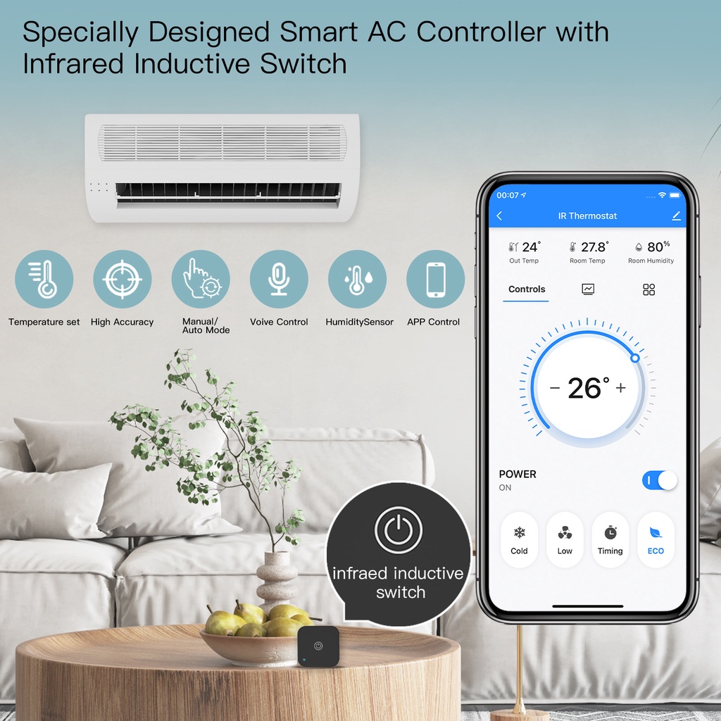 MOES Tuya WiFi IR Thermostat AC Controller Remote Control Temperature and Humidity Sensor Smart Life Voice Control Alexa Google
