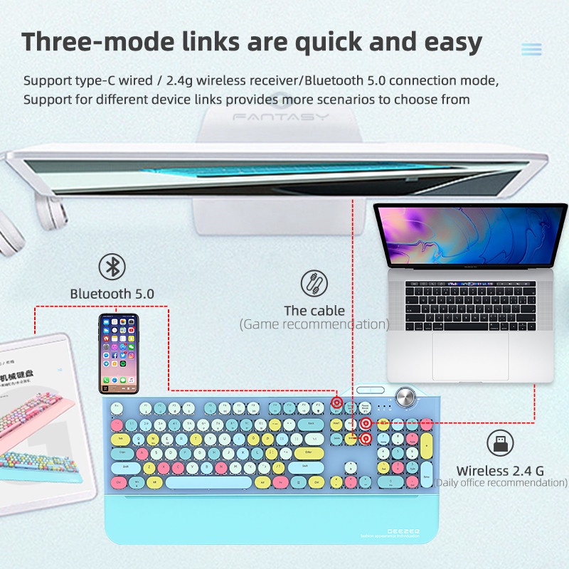 MOFII GEEZER G7 Bluetooth/2.4G Wireless/Wired THREE-MODE Rechargeable Mechanical Keyboard w/ Backlit