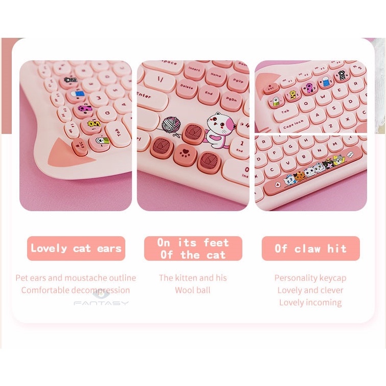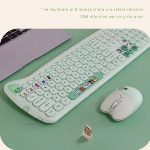 MOFII GEEZER Super Cute Kitty Cat PLUS Wireless Keyboard and Mouse Combo Girls Home Office Keyboard