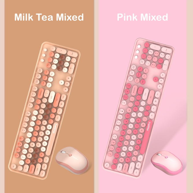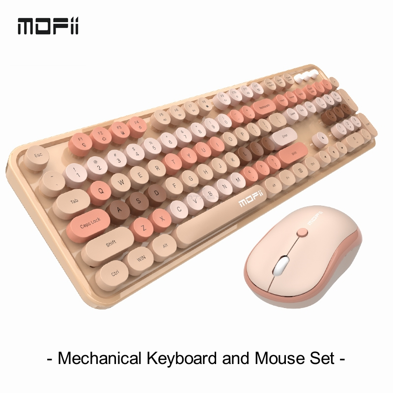MOFII Sweet PLUS Wireless Red Axis Mechanical Keyboard Mouse Set Retro Mixed Color Keyboard Mouse