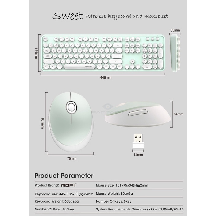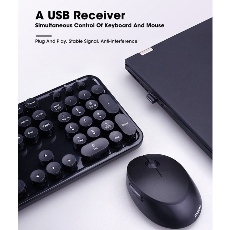 MOFII Sweet Solid Color 2.4G Wireless Keyboard and Mouse Set with Circular Suspension Keycaps 104key