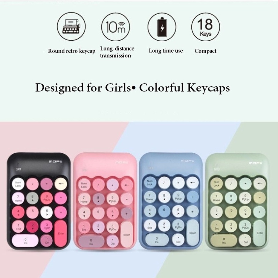 MOFII X910 Portable Mini Number Pad Colorful Typewriter 18 Keys 2.4G USB Wireless Numeric Keypad Com