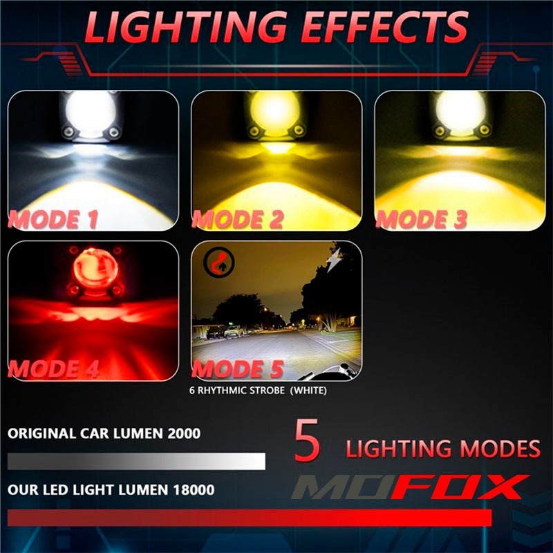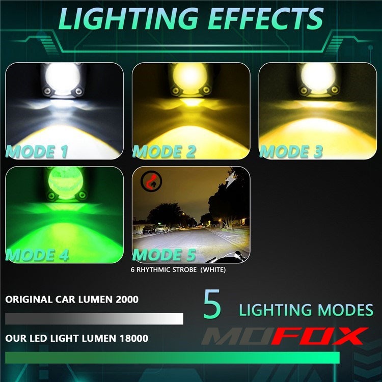 MOFOX 2pcs M1 Laser Gun 80W MDL Mini Driving Light For Motorcycle Hi/Lo Flash Light Auxiliary Light