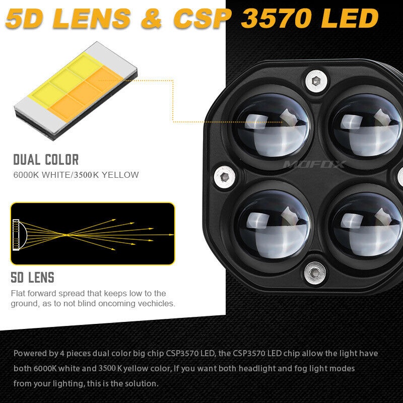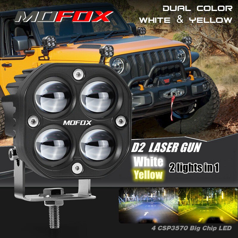MOFOX D2 Laser Gun Led Light Motorcycle 2-in-1 White&Yellow Fog Light Car LED D1 Mini Driving Lights