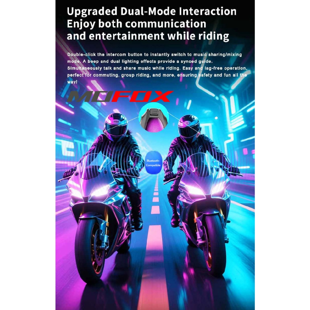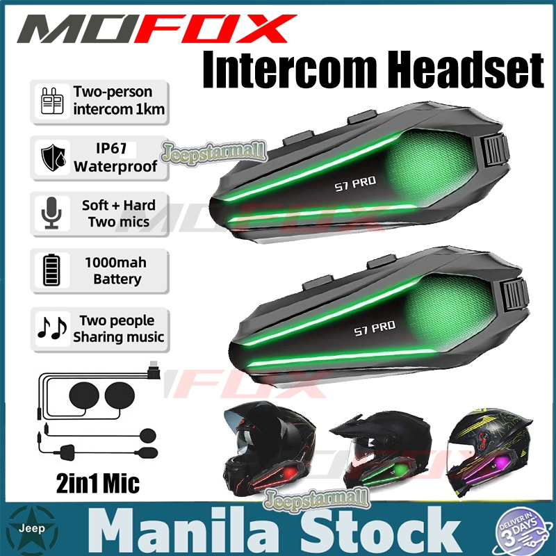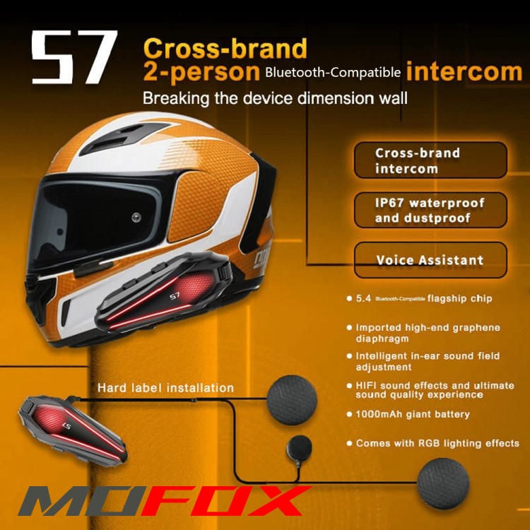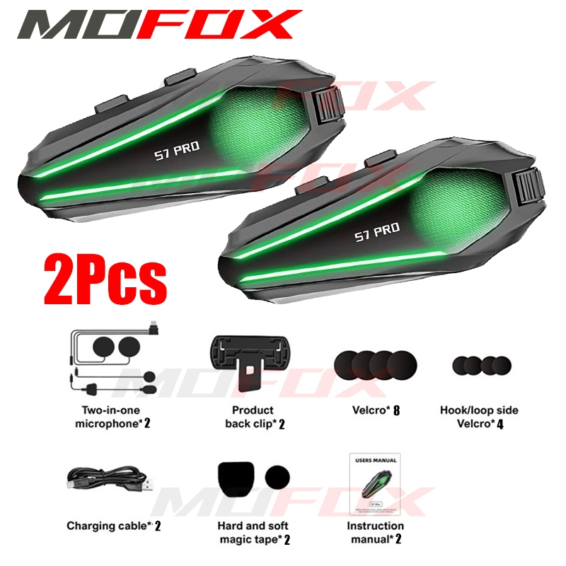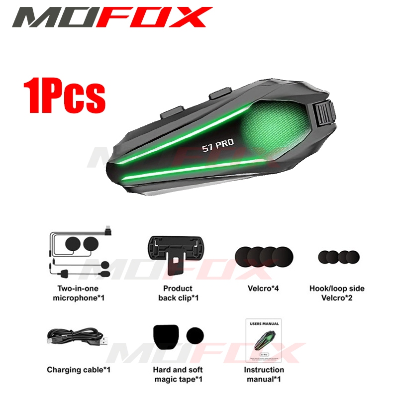 MOFOX S7 Pro Motorcycle Helmet Intercom Headset 2in1 Mic Music Share for 2-6 Rider 1000M With FM