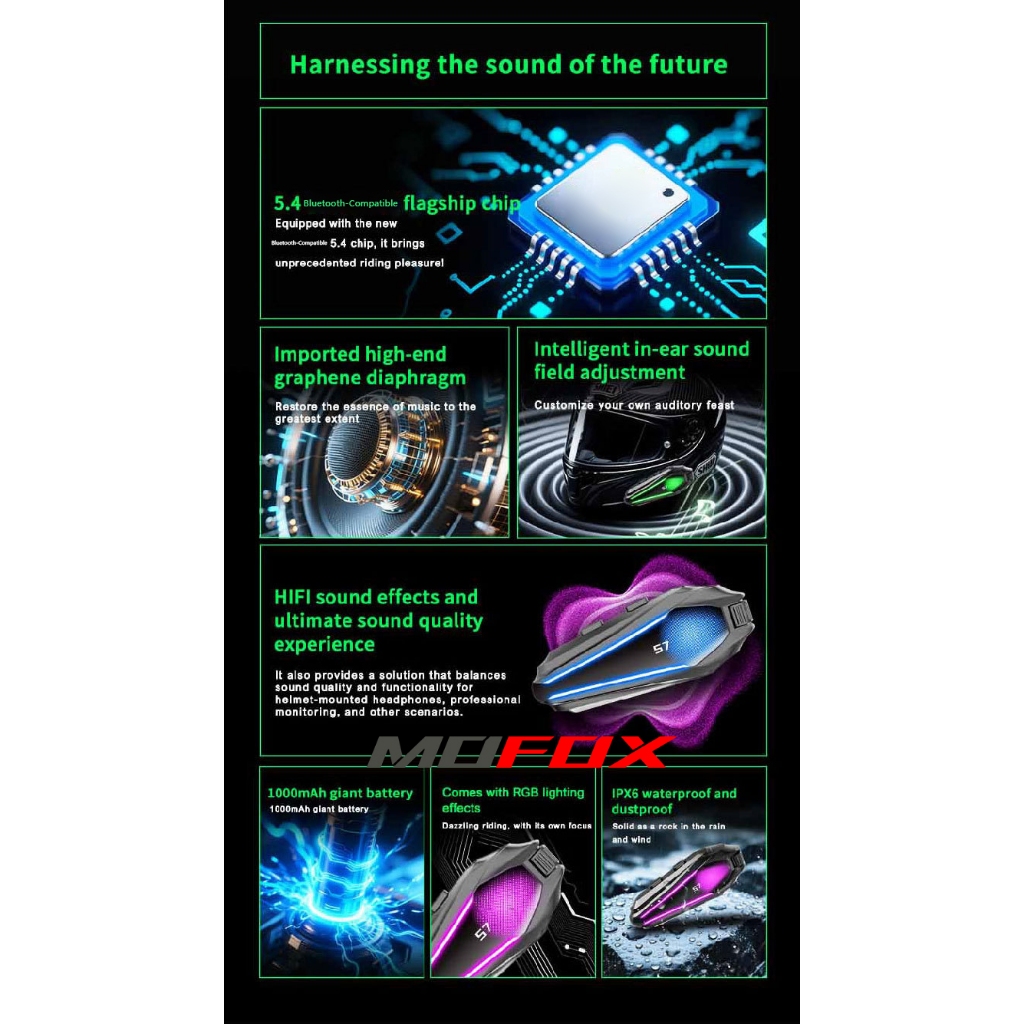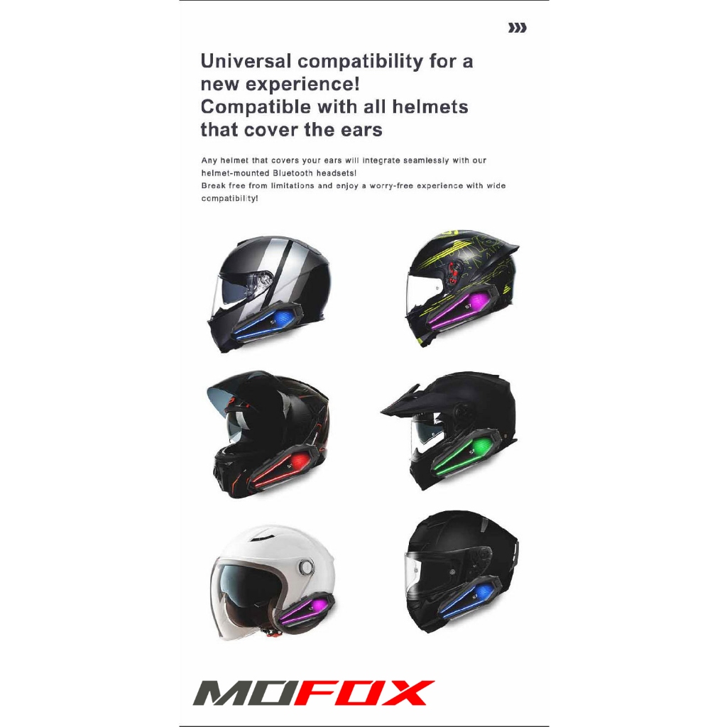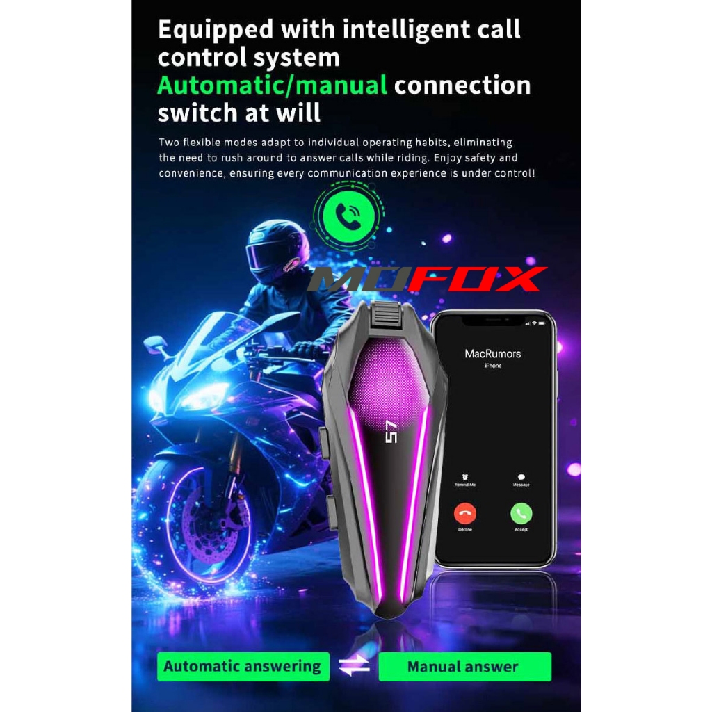 MOFOX S7 Pro Motorcycle Helmet Intercom Headset 2in1 Mic Music Share for 2-6 Rider 1000M With FM