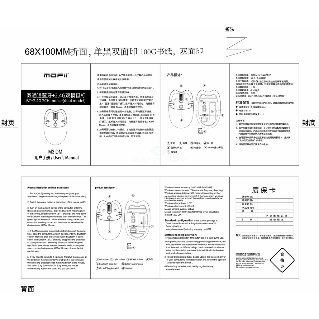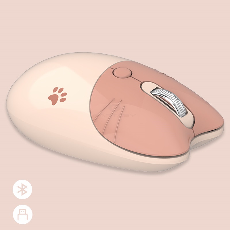 MOFii M3DM USB Bluetooth Dual-mode Wireless Mouse Kitty Cat Shape Cute Mute Office Mice Gaming Mouse