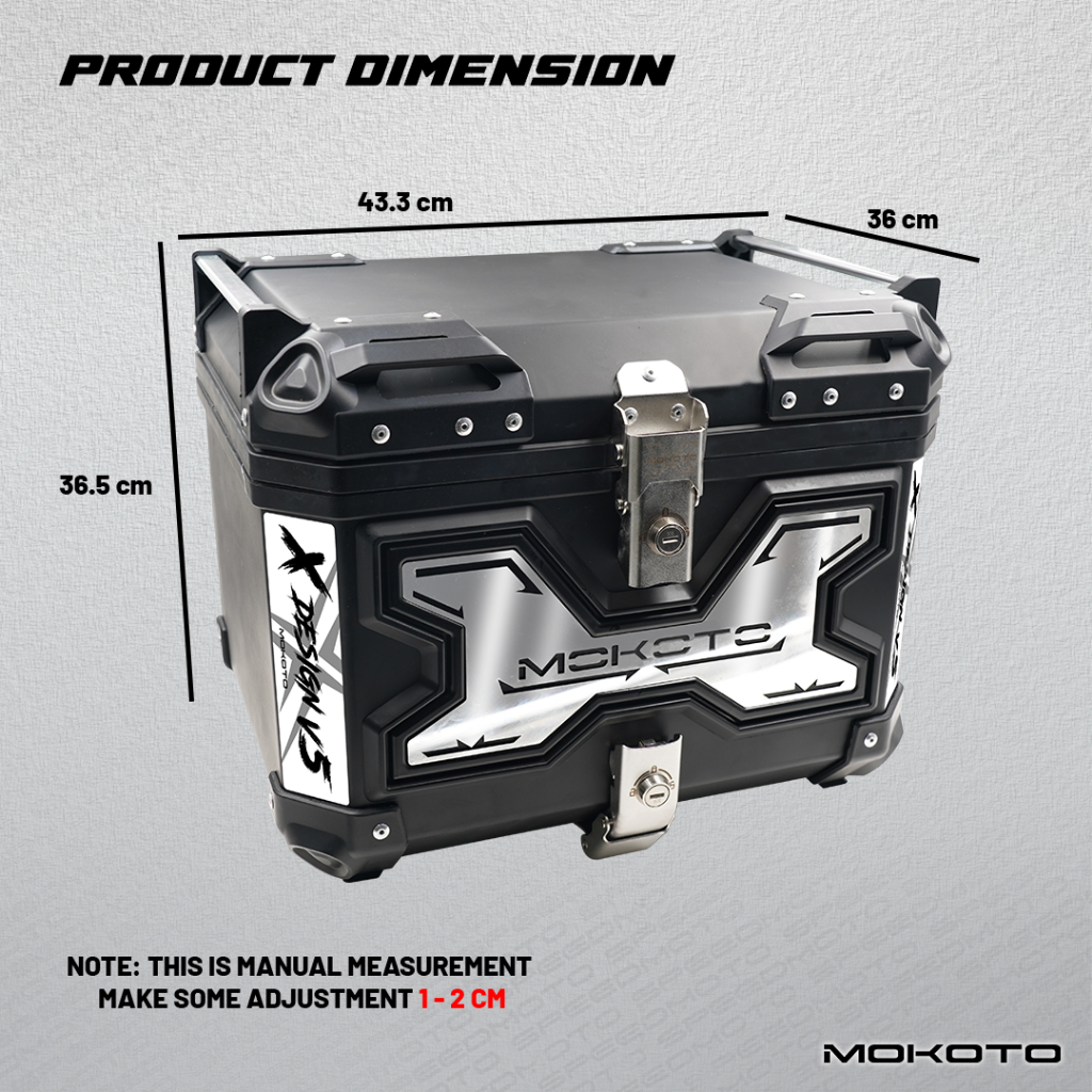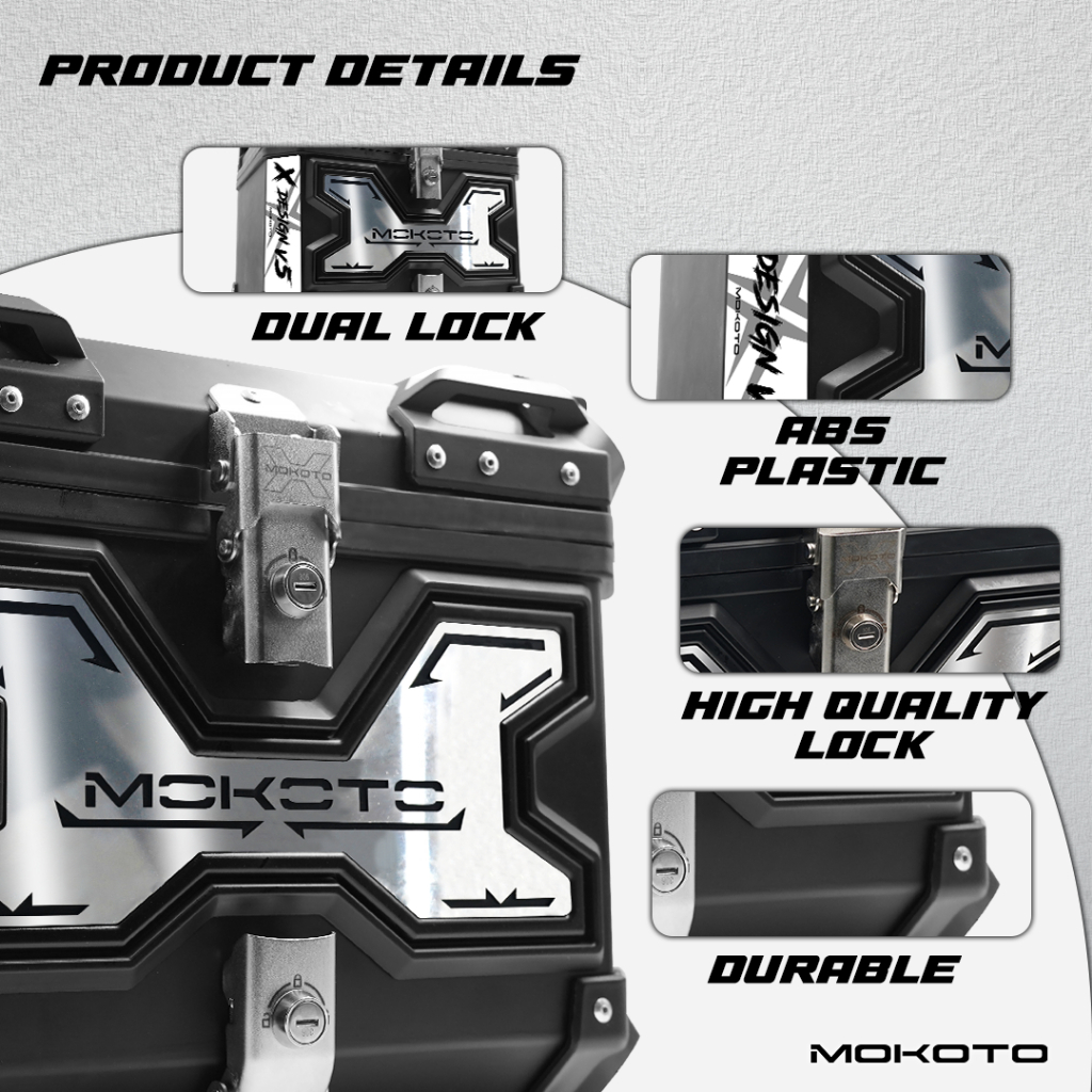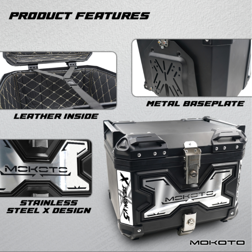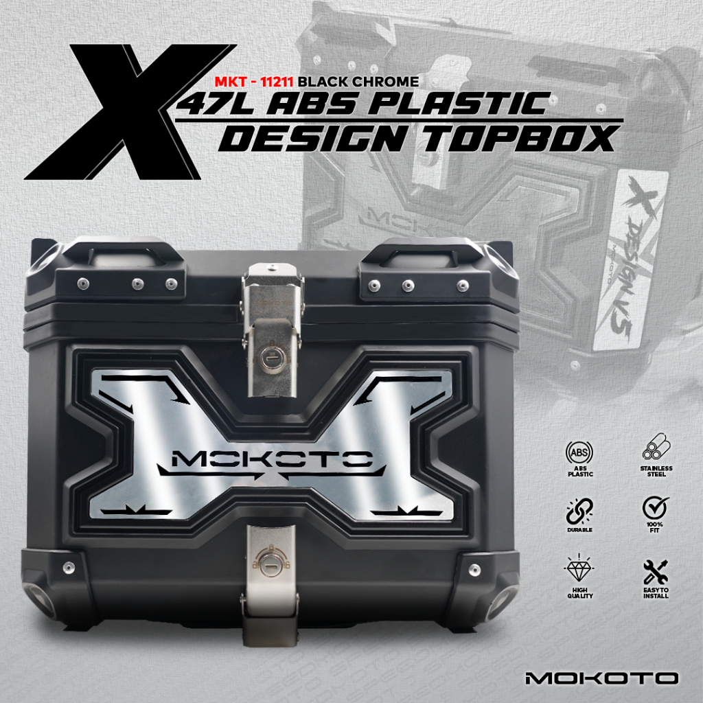 MOKOTO 47L TOP BOX XDESIGN ABS PLASTIC MKT-11211 CHROME BLACK REAR TAIL BOX FOR UNIVERSAL MOTORCYCLE
