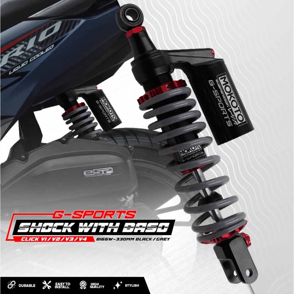 MOKOTO HONDA CLICK V1 V2 V3 REAR SHOCK ABSORBER WITH BASO 330MM GOLD & BLACK SERIES FOR CLICK 1PC