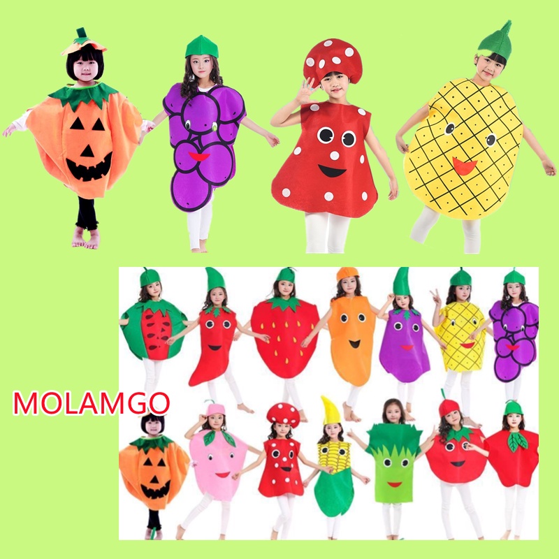 MOLAMGO Nutrition Month Catwalk Stage Vegetable Dress Up Pineapple Strawberry Melon And Fruit Creative Children's Day Halloween Kids Costumes Parade