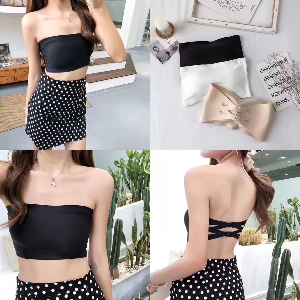 MOMO Strapless Bra Solid Color Seamless Cross Tube Bra Korean Chiffon Tube Bra