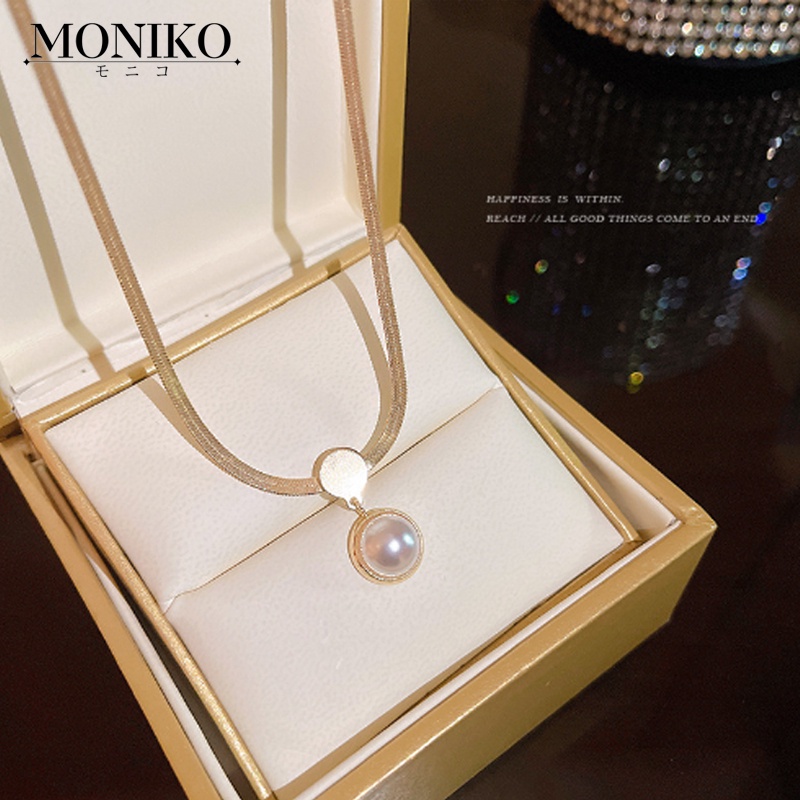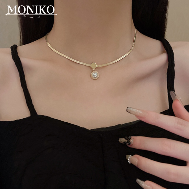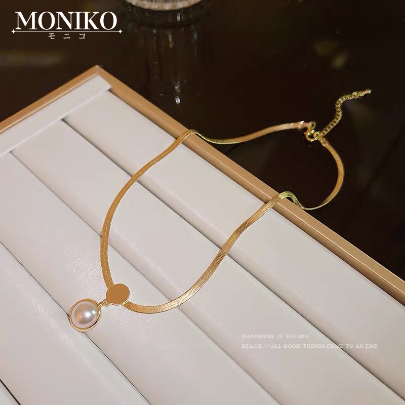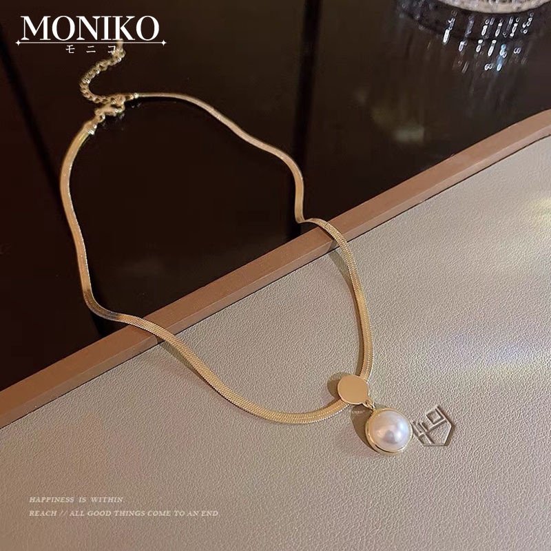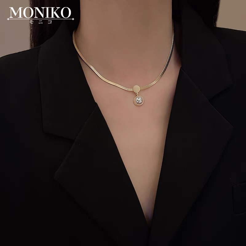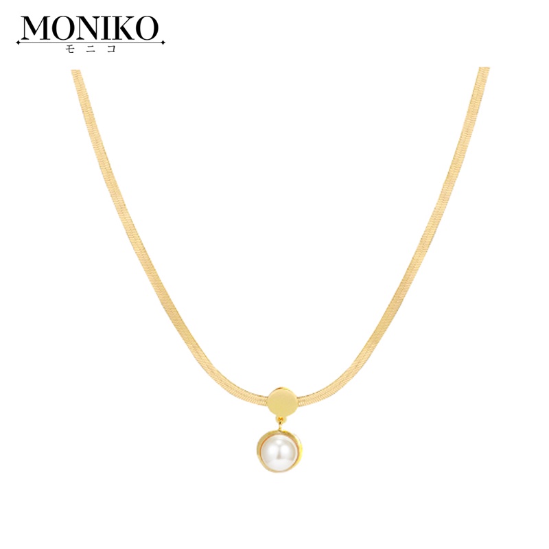 MONIKO Original Design Pearl Pendant Snake Bone Chain Cuban Chain Women 18k Gold Plated Necklace