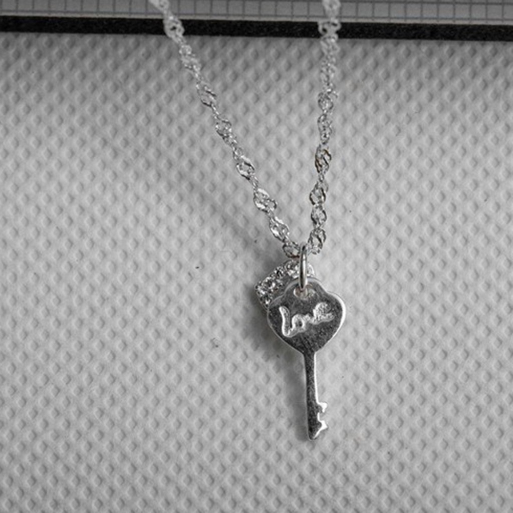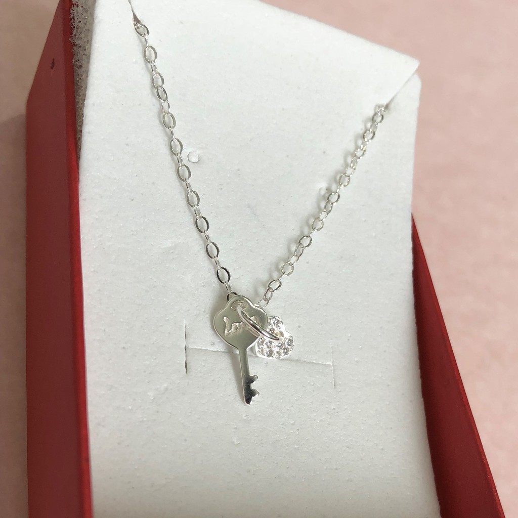 MORNING STAR SILVER MX157 Italy 92.5 Silver Heart Key Pendant Necklace MMS113