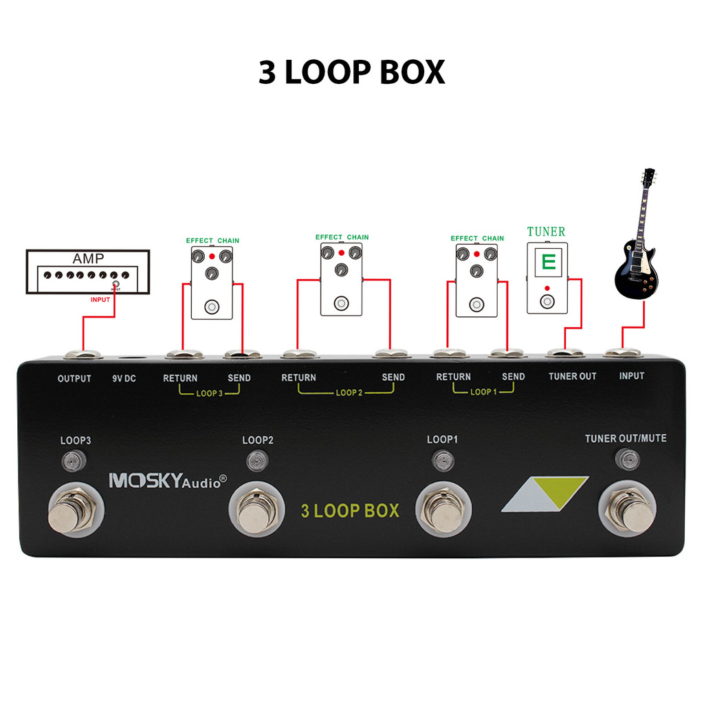 MOSKYAUDIO 3 Loop Box Guitar Effect Pedal with Channel Selection True Bypass Guitar Effects Loop Switcher Pedal Channel Switcher