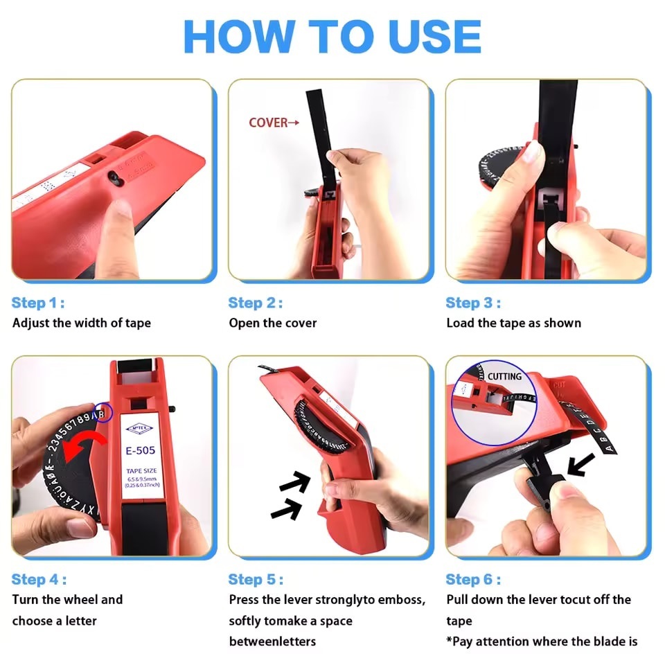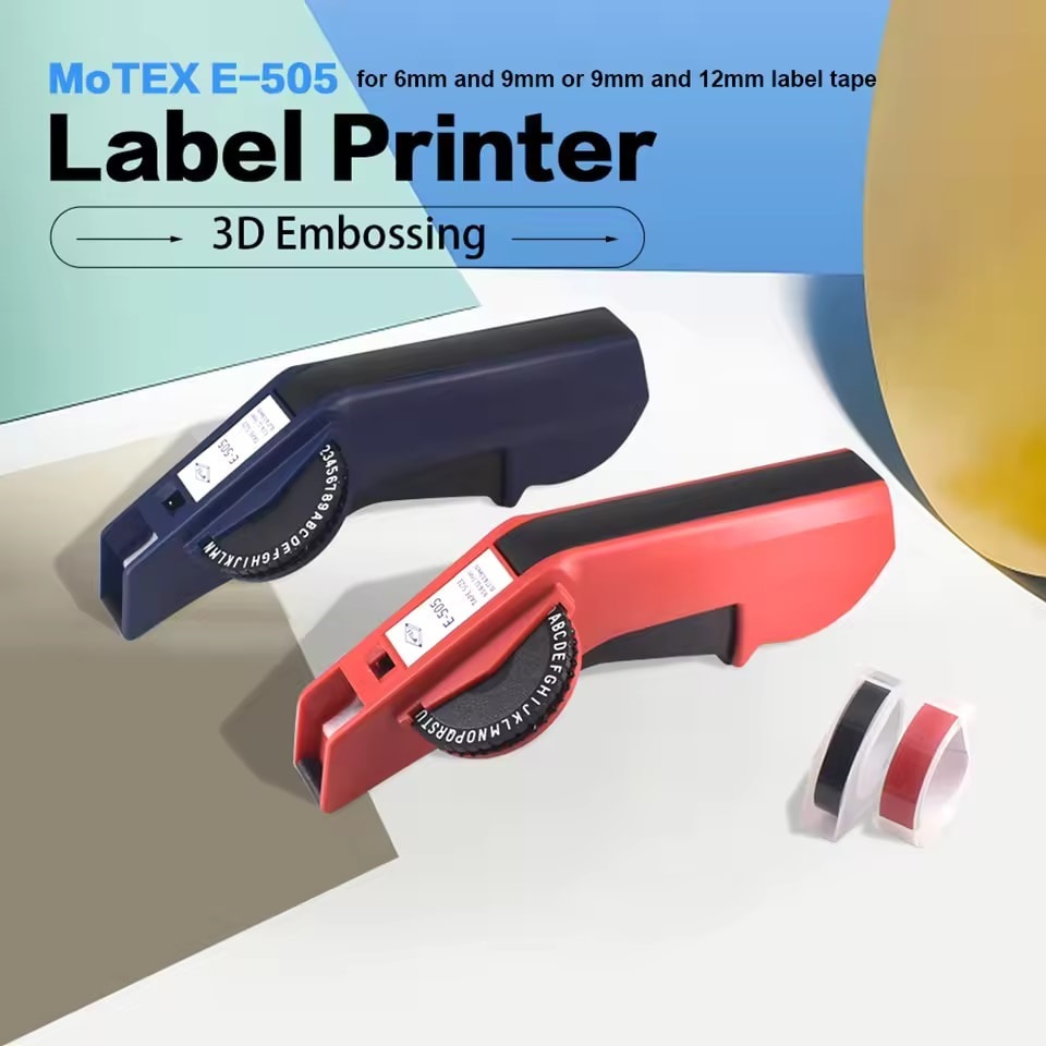 MOTEX embossing machine waterproof sticker manufacturer E-5500 E-505 motex label maker with 6/9/12mm