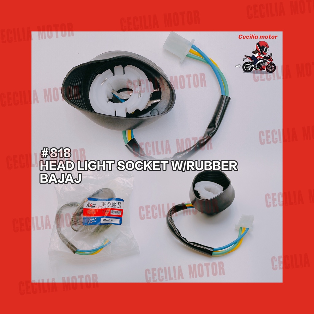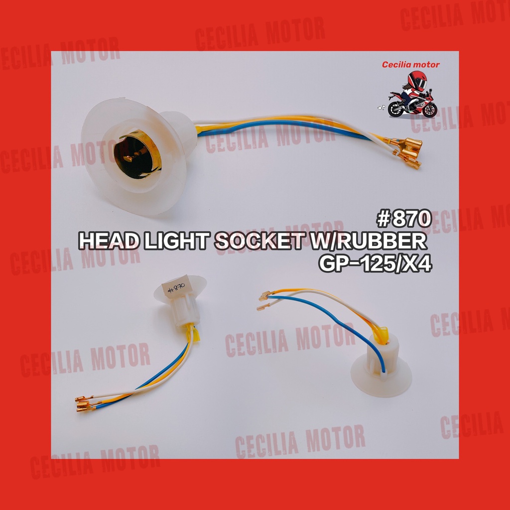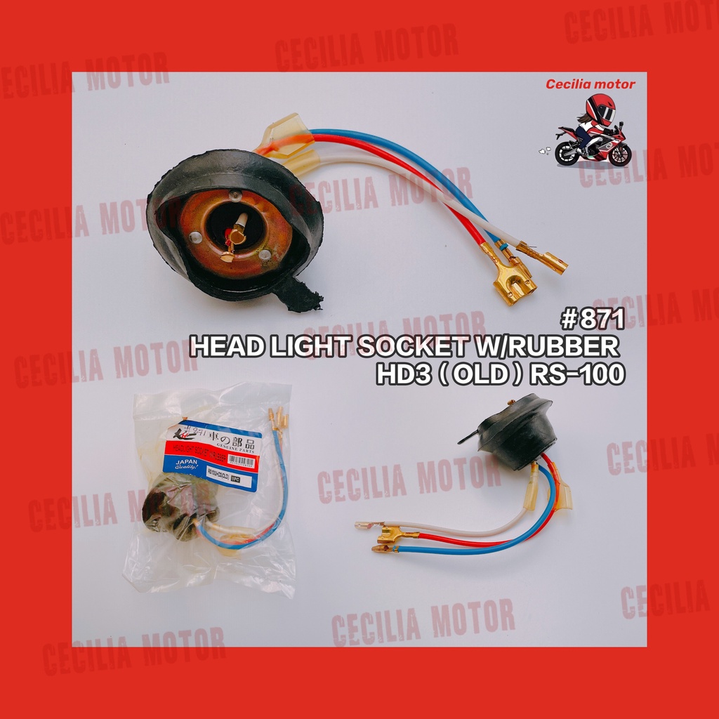MOTORCYCLE HEAD LIGHT SOCKET W/RUBBER HD3 RS-100 TMX-125 XRM BAJAJ TMX STX-125 RUSI125 GP-125 GS125