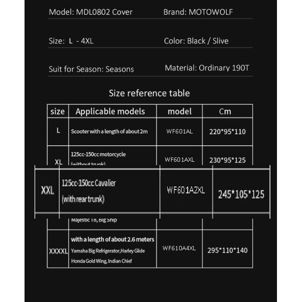 MOTOWOLF MOTORCYCLE COVER MDL0802