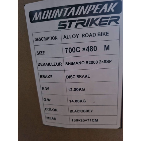 MOUNTAINPEAK STRIKER 700c alloy 48/50black gray R2000 2x8 speed