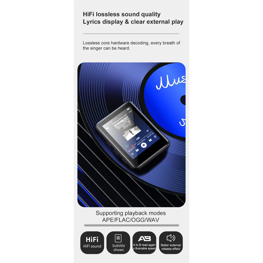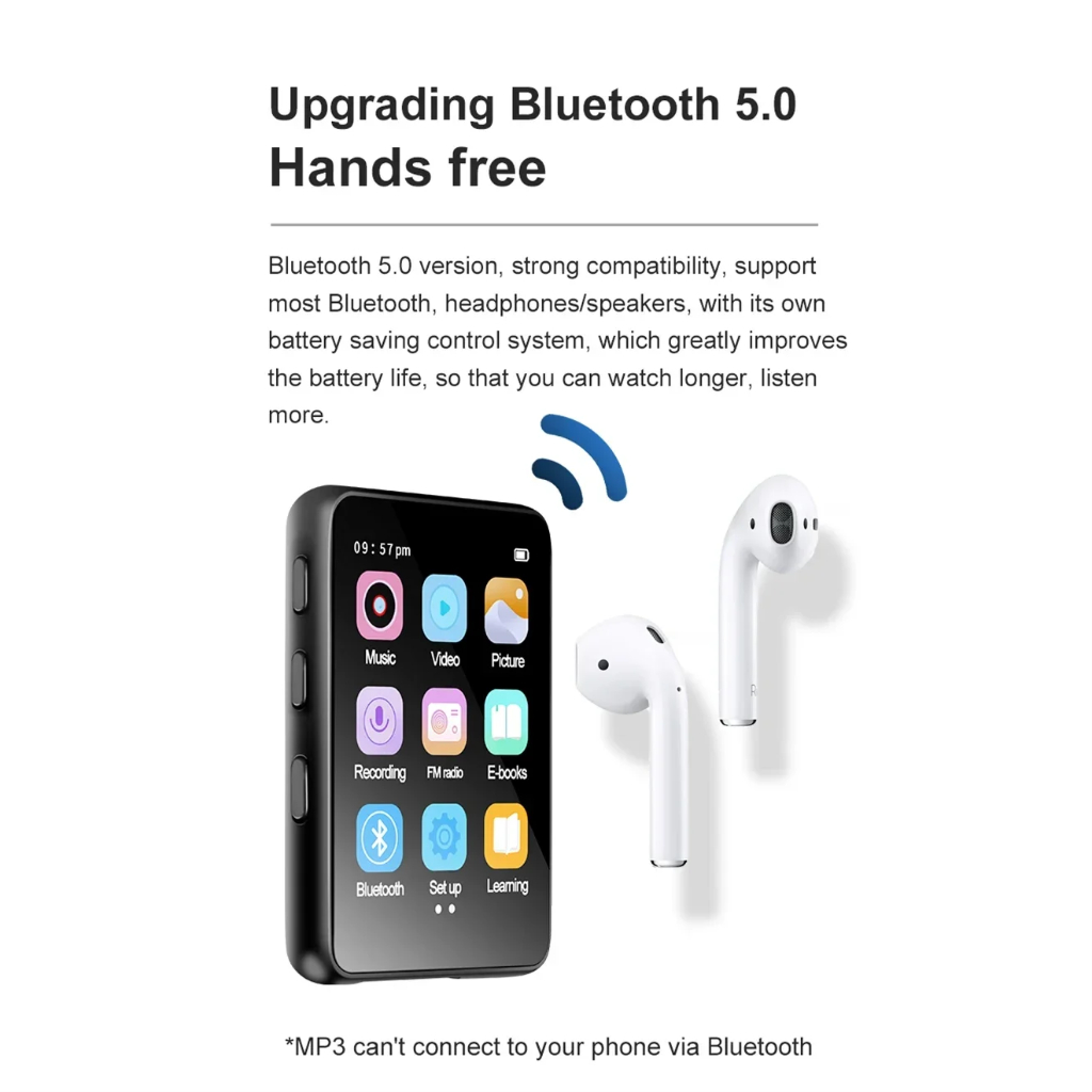 MP3 Player 2.4inch Screen Mini Music Player Bluetooth 5.0 Student Sports Walkman Ebook with Headphones Student Version Mini Ultra-thin Voice Recorder
