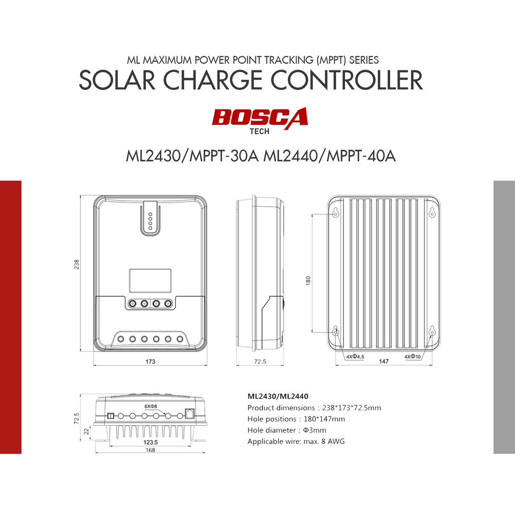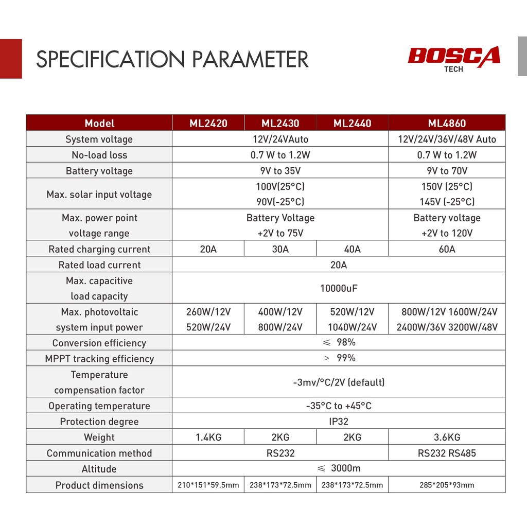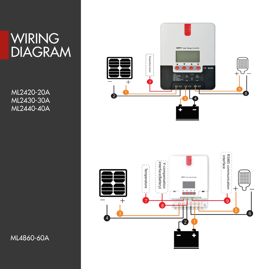 MPPT Solar Charge and Discharge Controller 40A ML Maximum Power Point Tracking Series 12V/24V ML2440