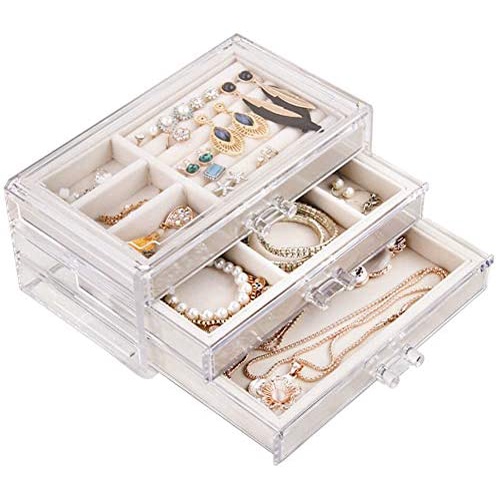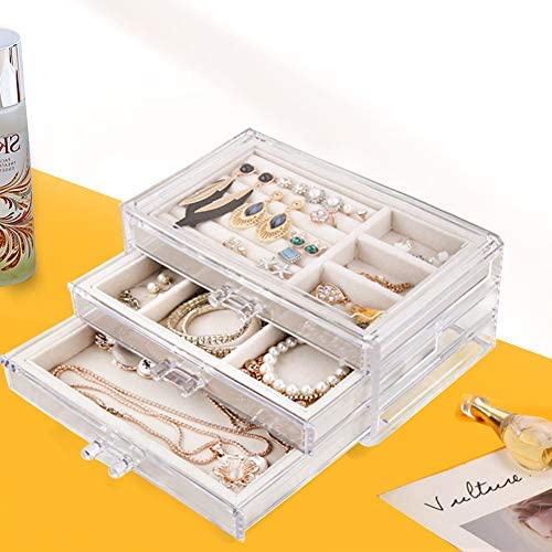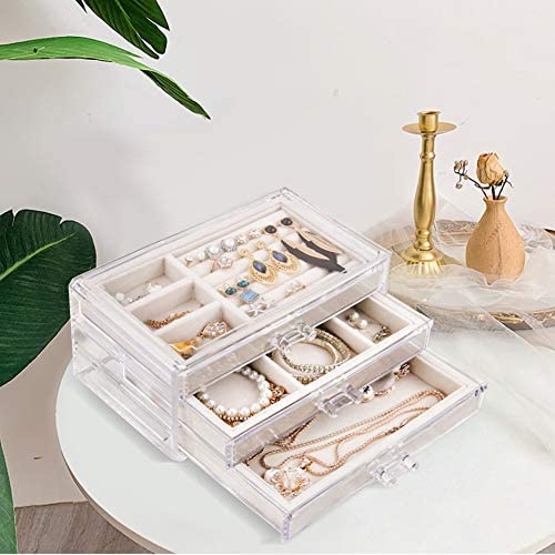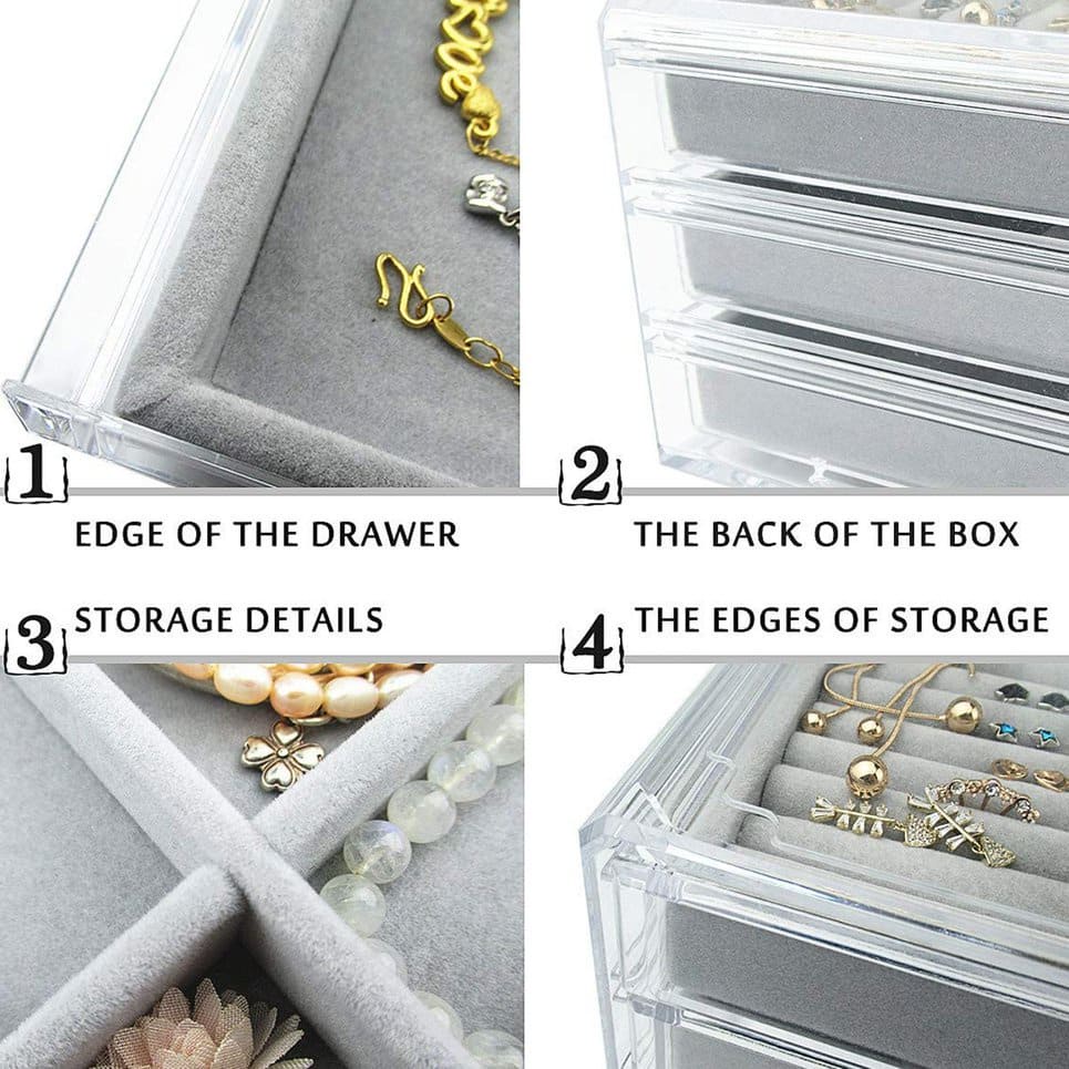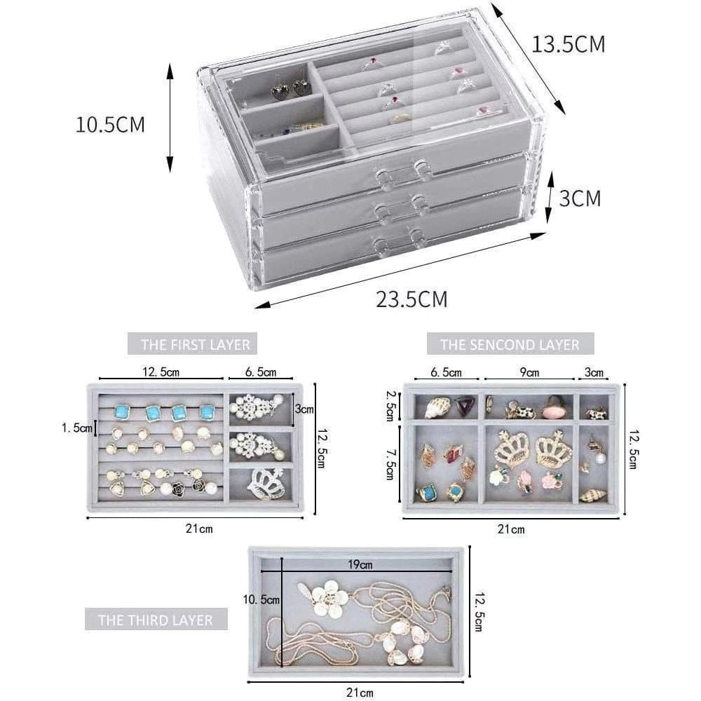 MS/3 Layers Acrylic Jewelry Box Drawer Velvet Tray Jewelry Storage Box Watch Earring Storage Box